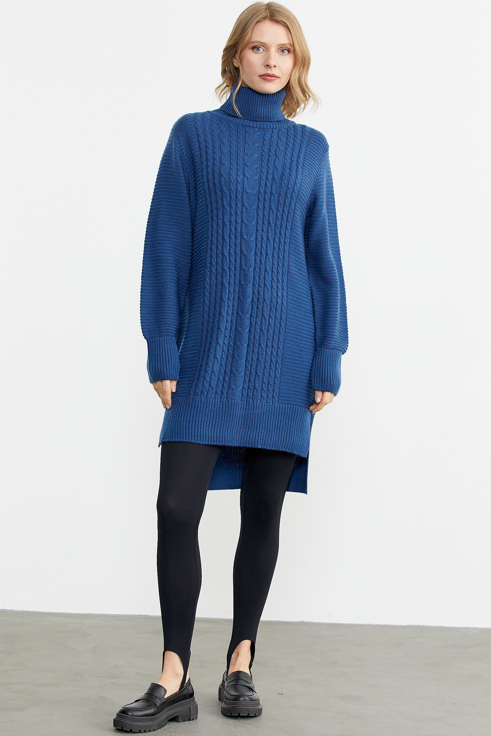 Tam Balıkçı Yaka Triko Tunik - Indigo
