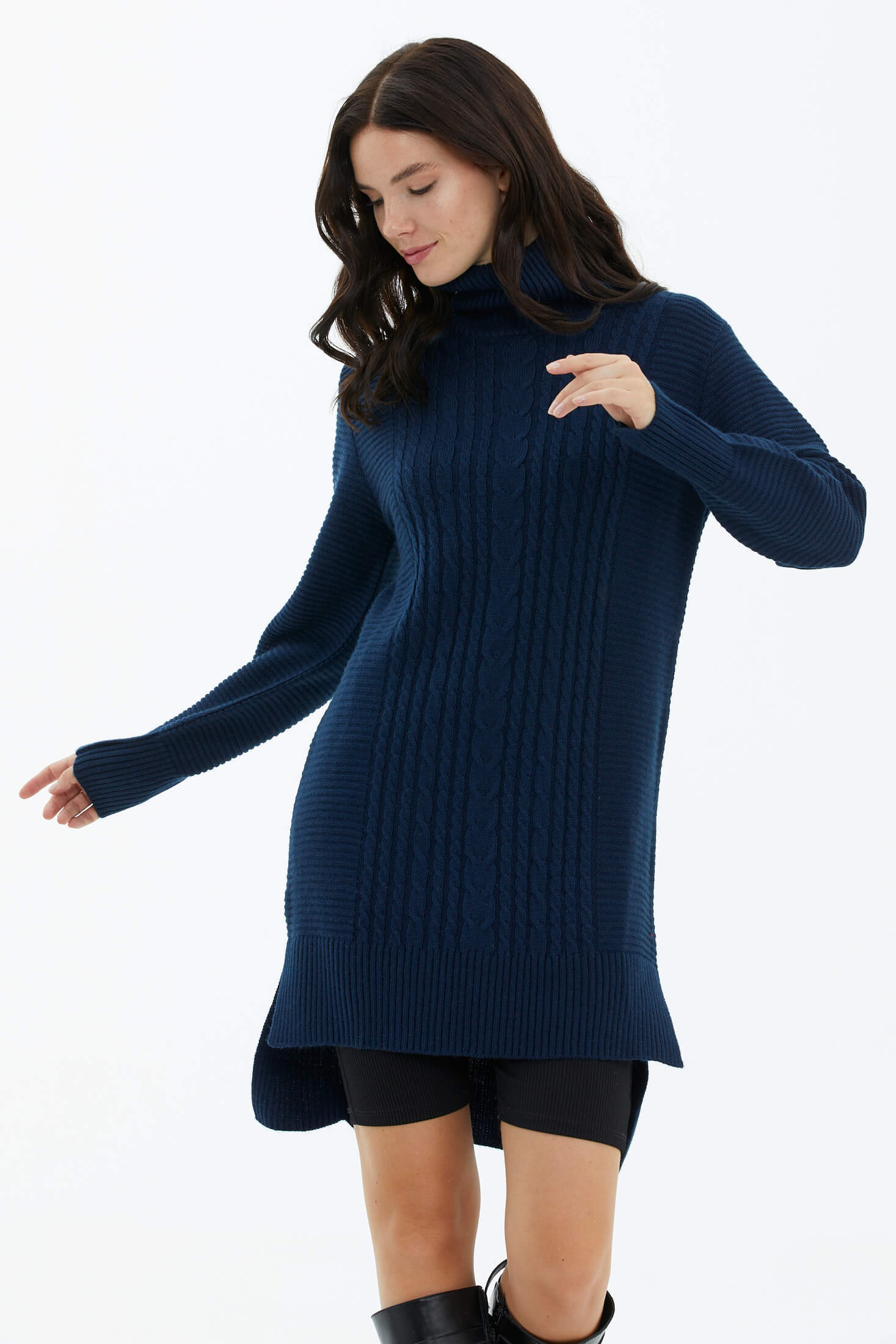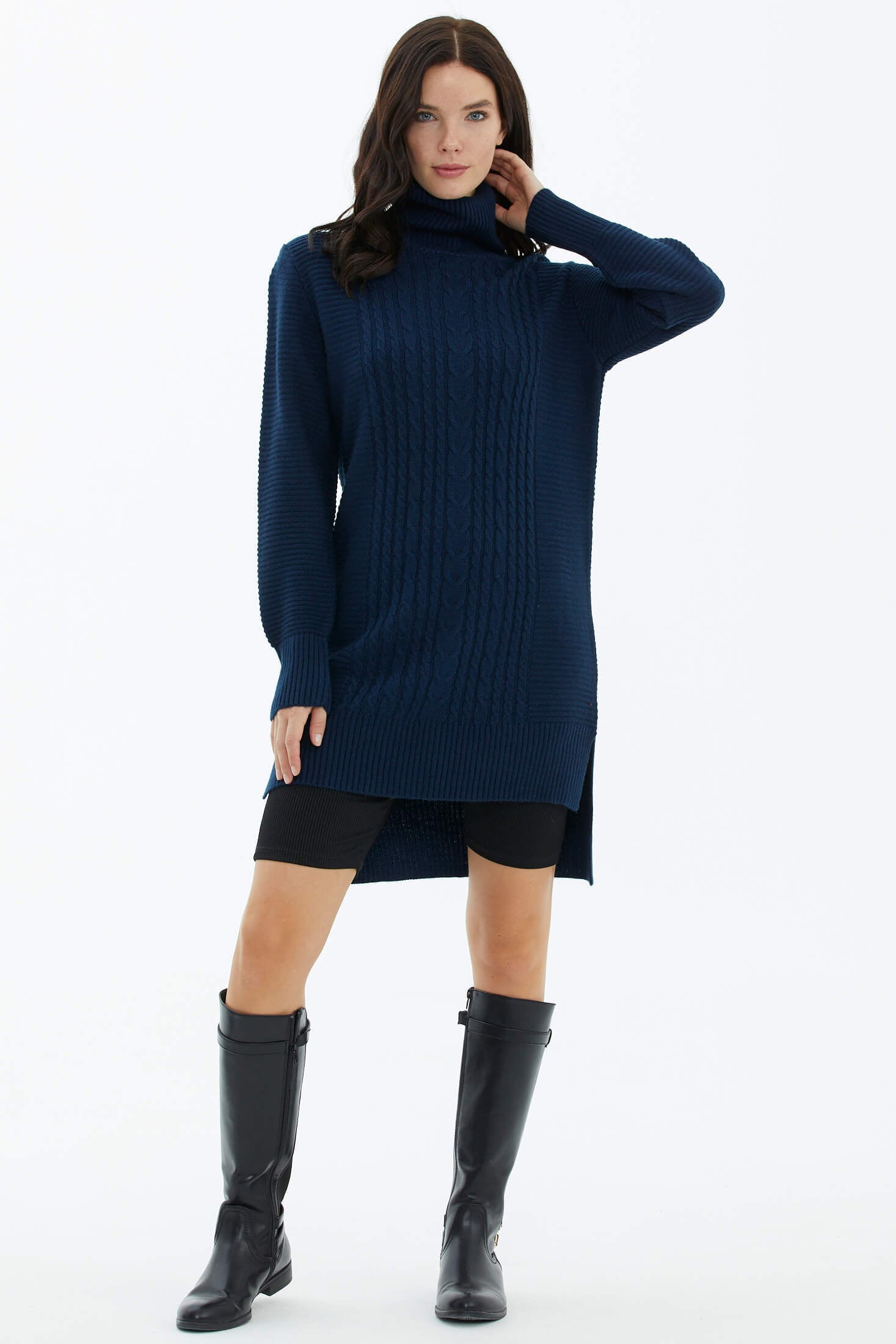 Tam Balıkçı Yaka Triko Tunik - Lacivert