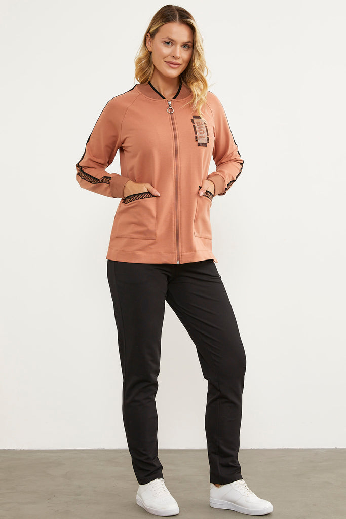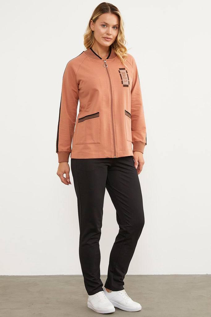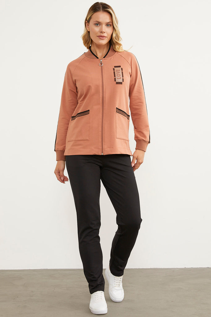 Taş Baskılı Tunik Eşofman Takım - Somon