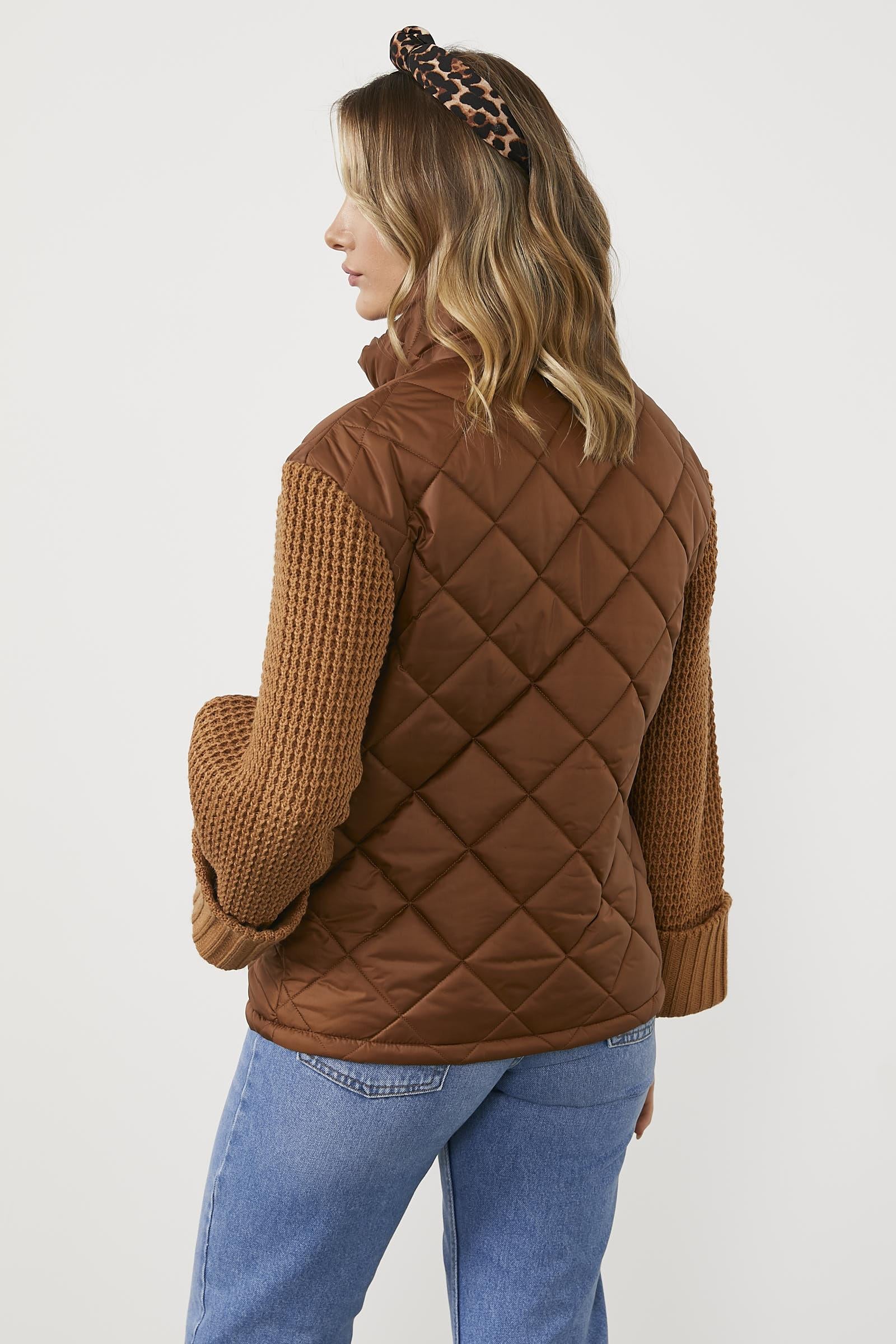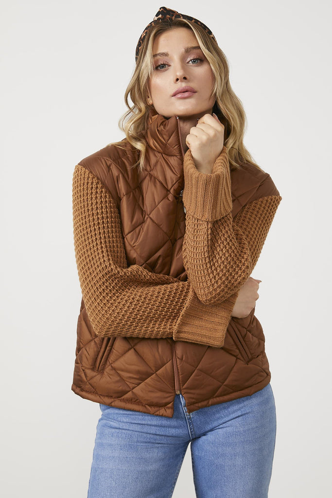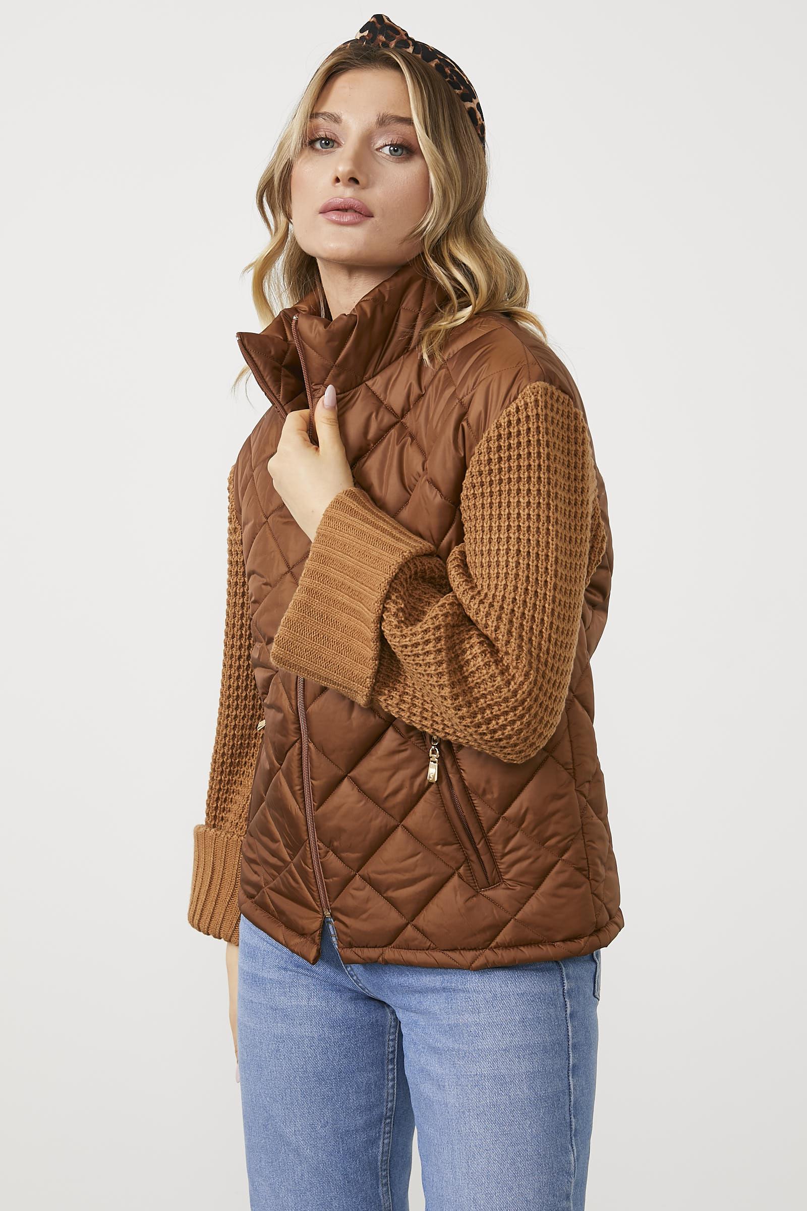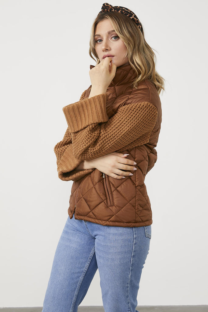 Triko Kombinli Kapitone Dik Yaka Mont - Kamel