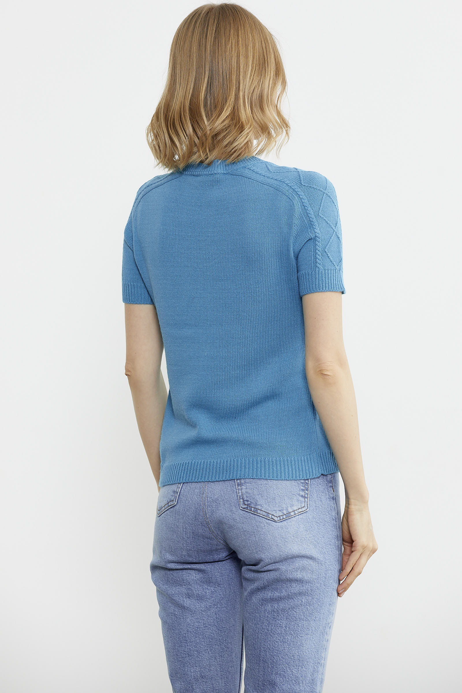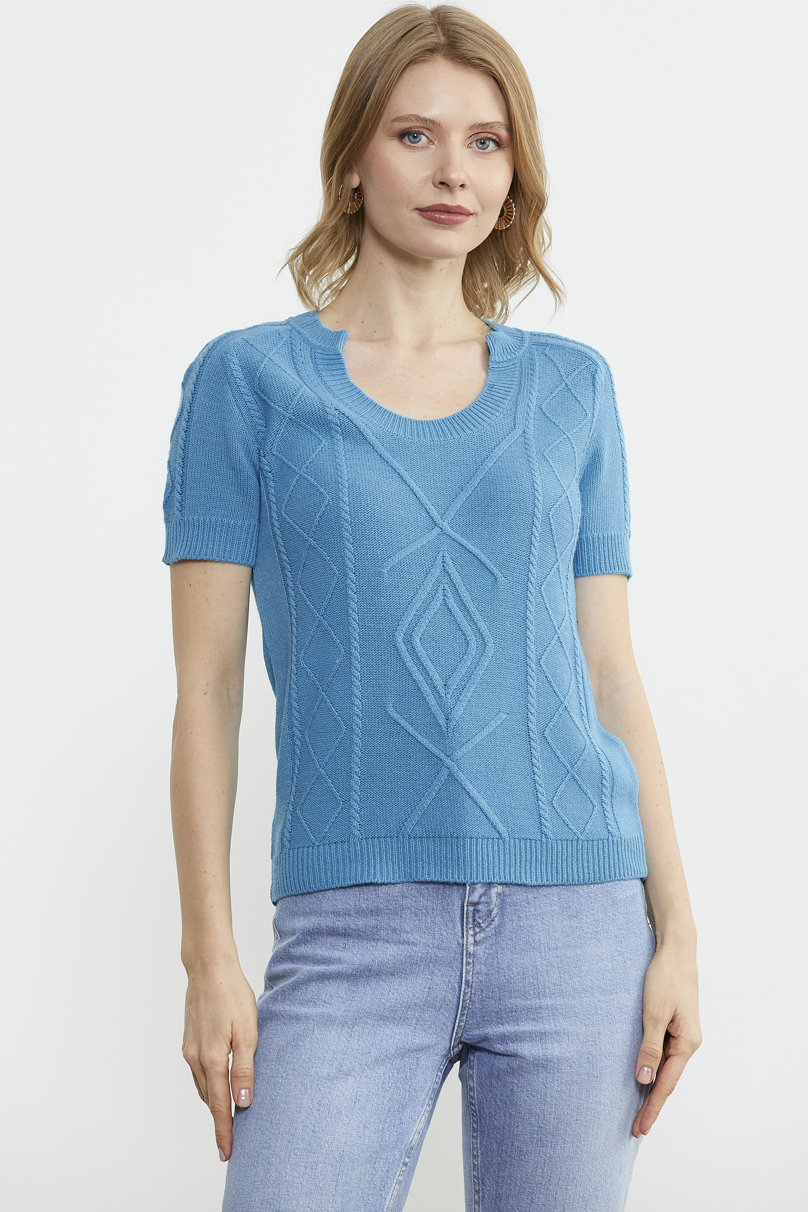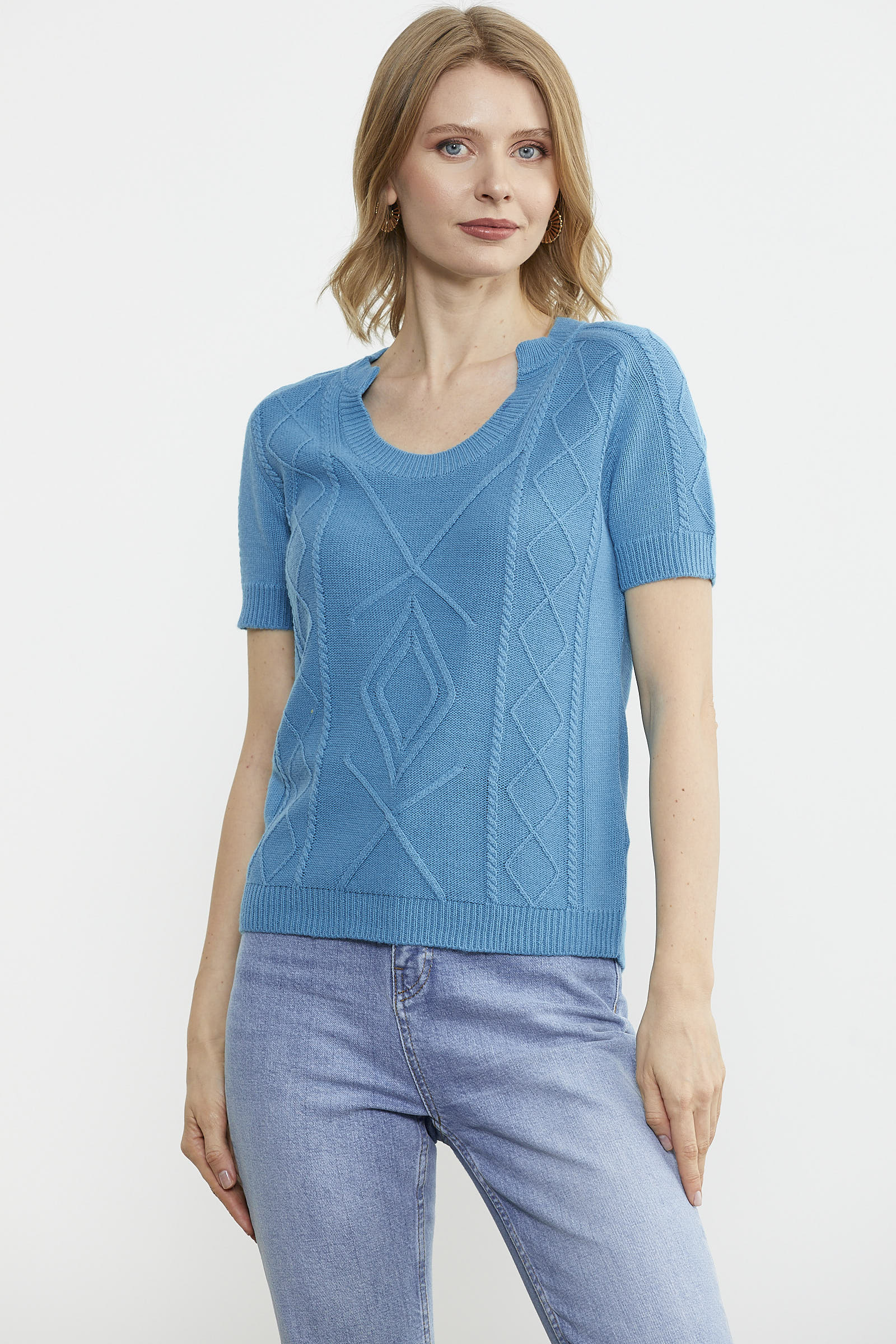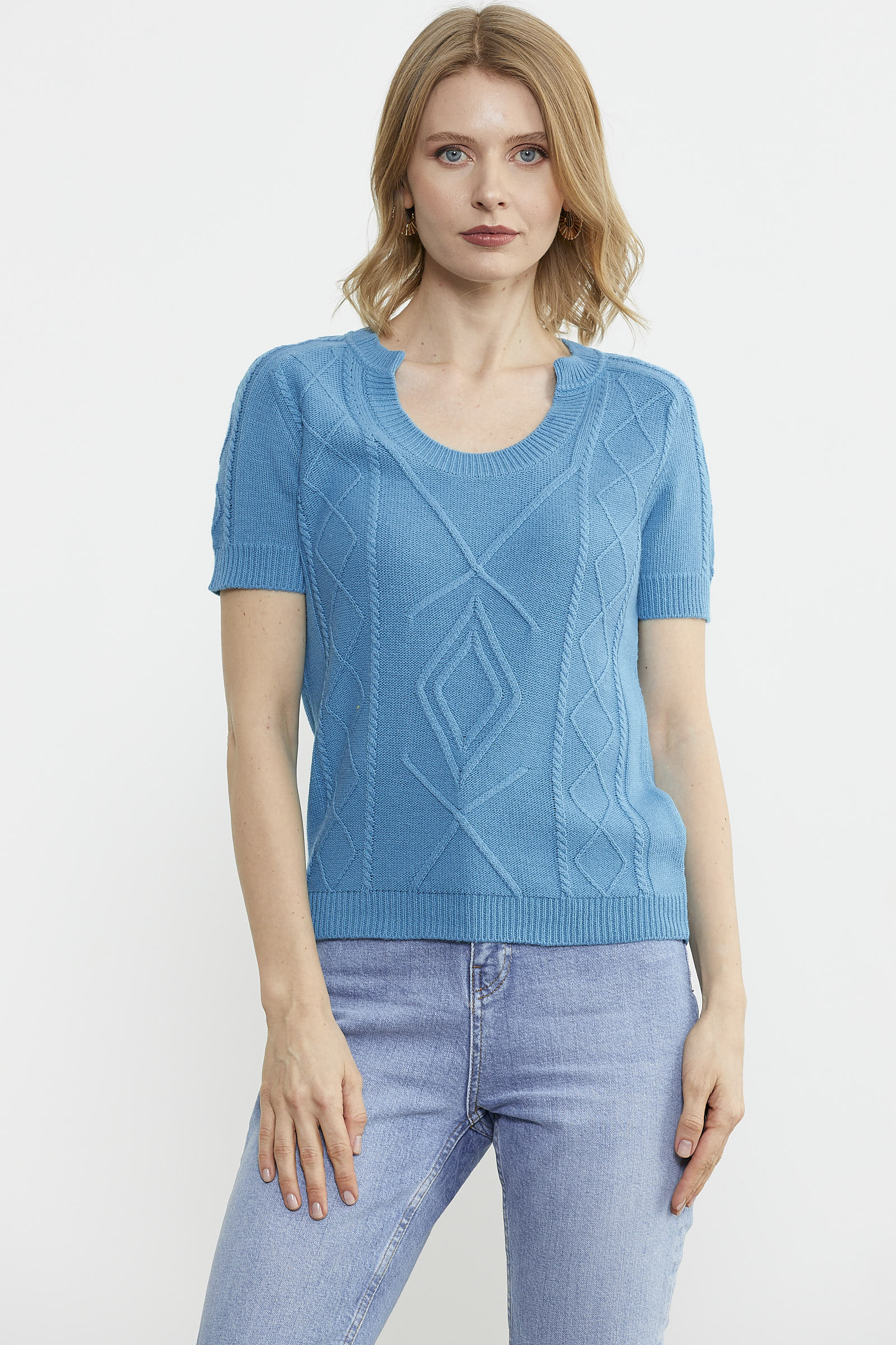 U Yaka Yünlü Triko Kazak - Turkuaz