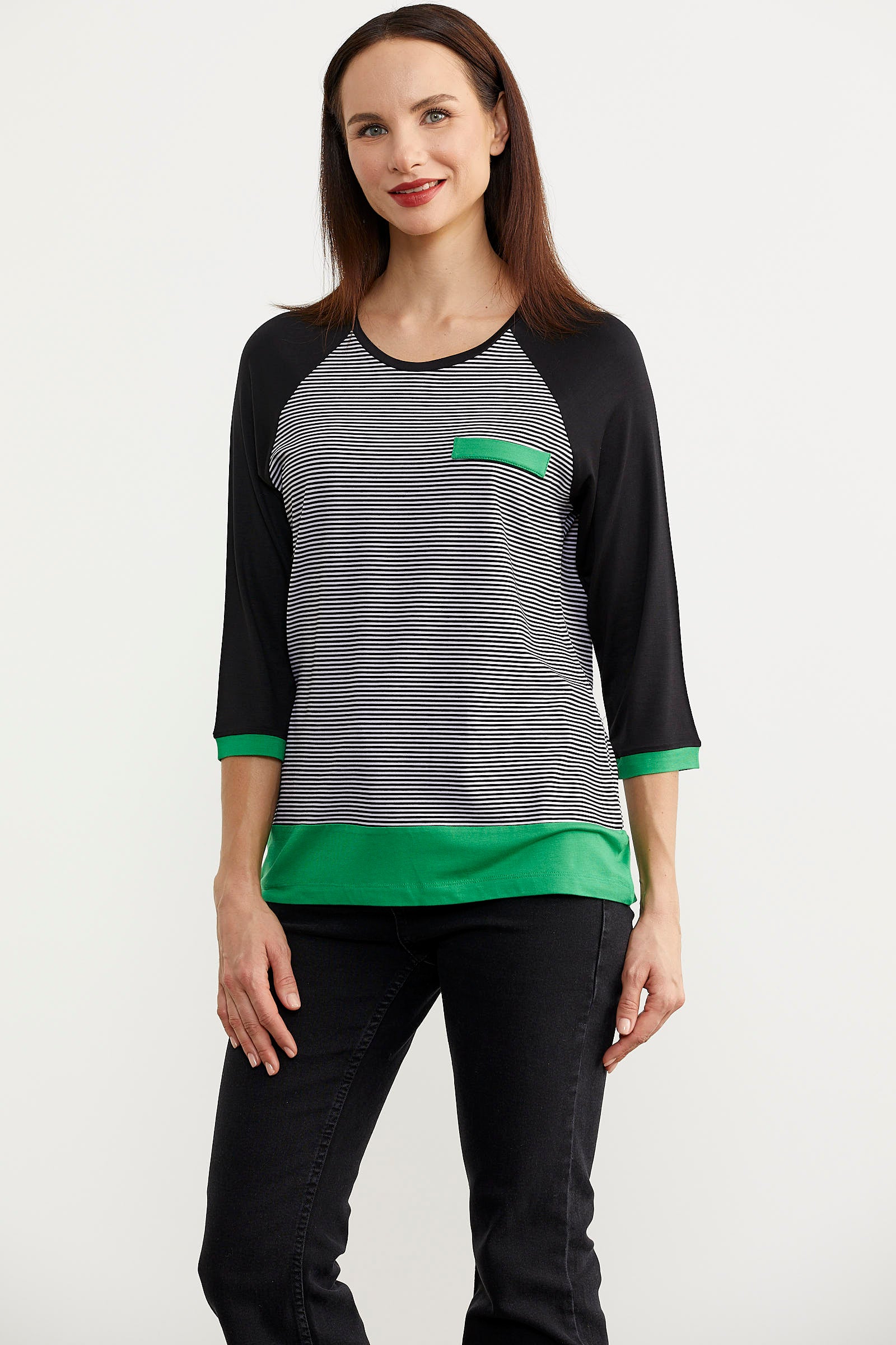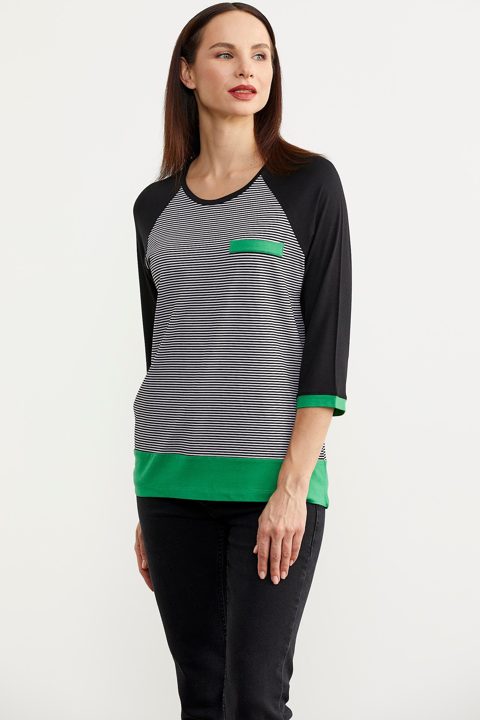 Truvakar Kol Çizgili Tunik Tişört - Siyah