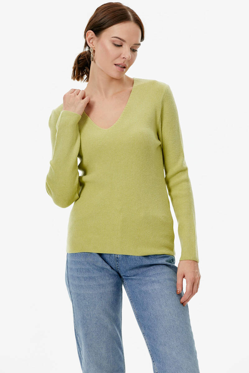 V Yaka Basic Triko Kazak - Fıstık Yeşili