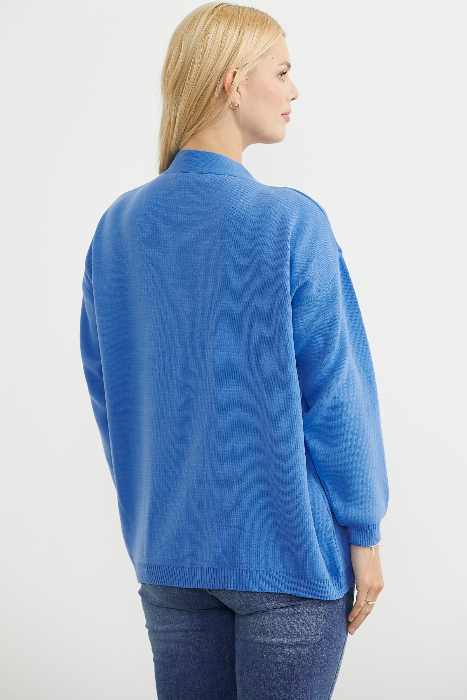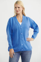 V Yaka Salaş Düğmeli Triko Hırka - Mavi