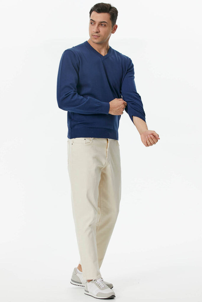 V yaka, uzun kollu, manşetleri, etek ucu ve yaka kısmı ince lastik örgülü tasarım, pamuklu yumuşak yapısı ile konfor sunuyor.