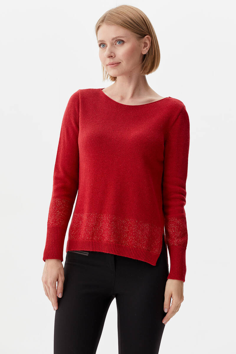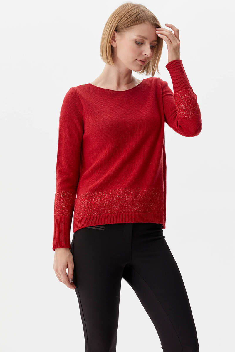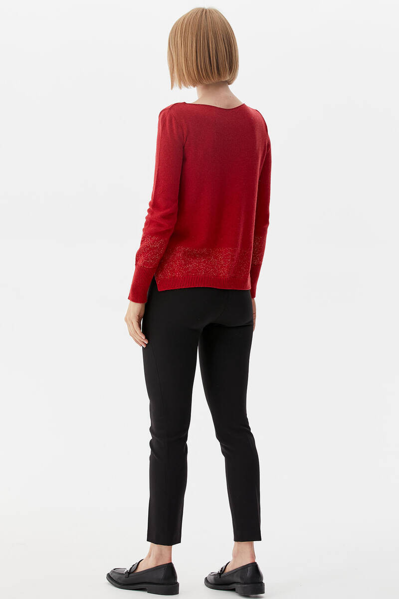 Kayık Yaka Sim Detaylı Triko Kazak - Kırmızı