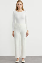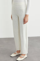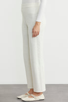 Yanı Motifli Rahat Kalıp Triko Pantolon - Kemik