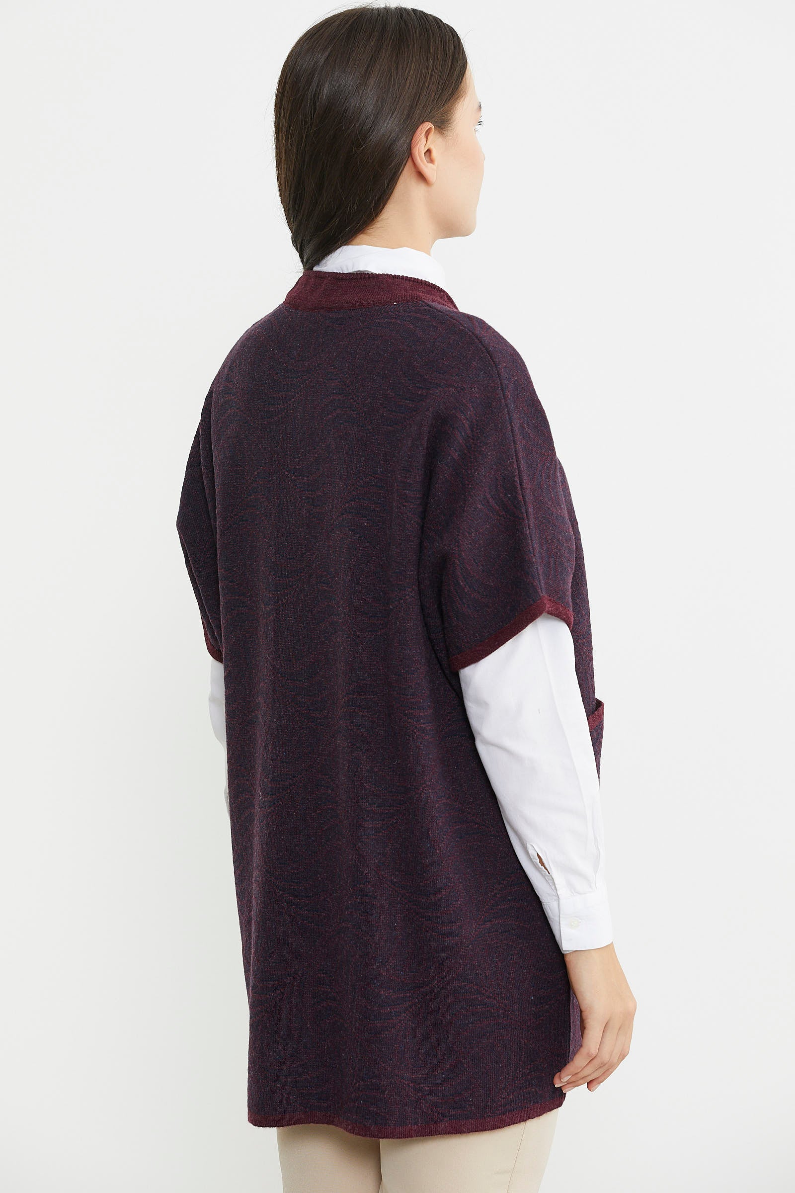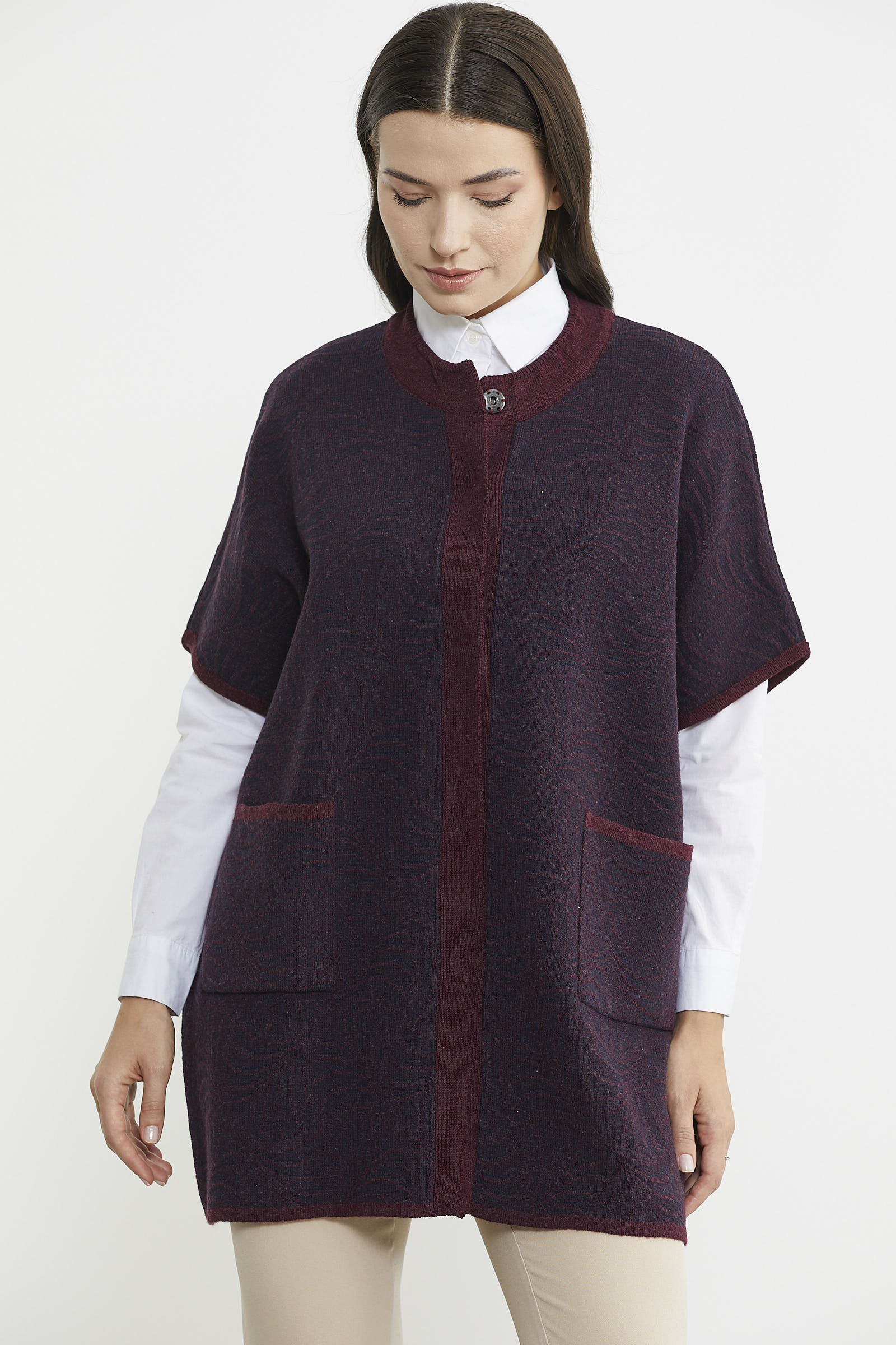 Yarasa Kısa Kol Yünlü Triko Ceket - Bordo