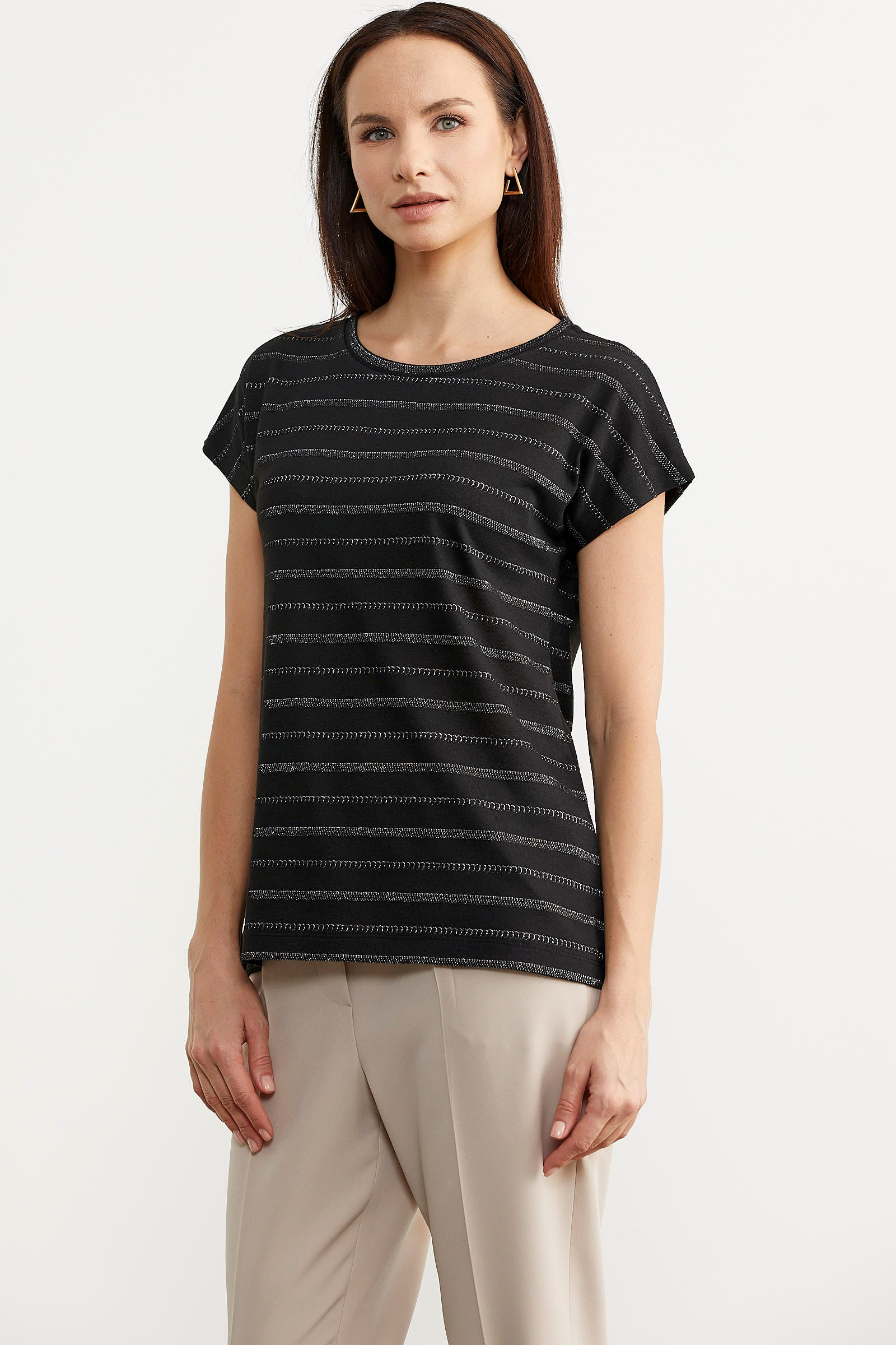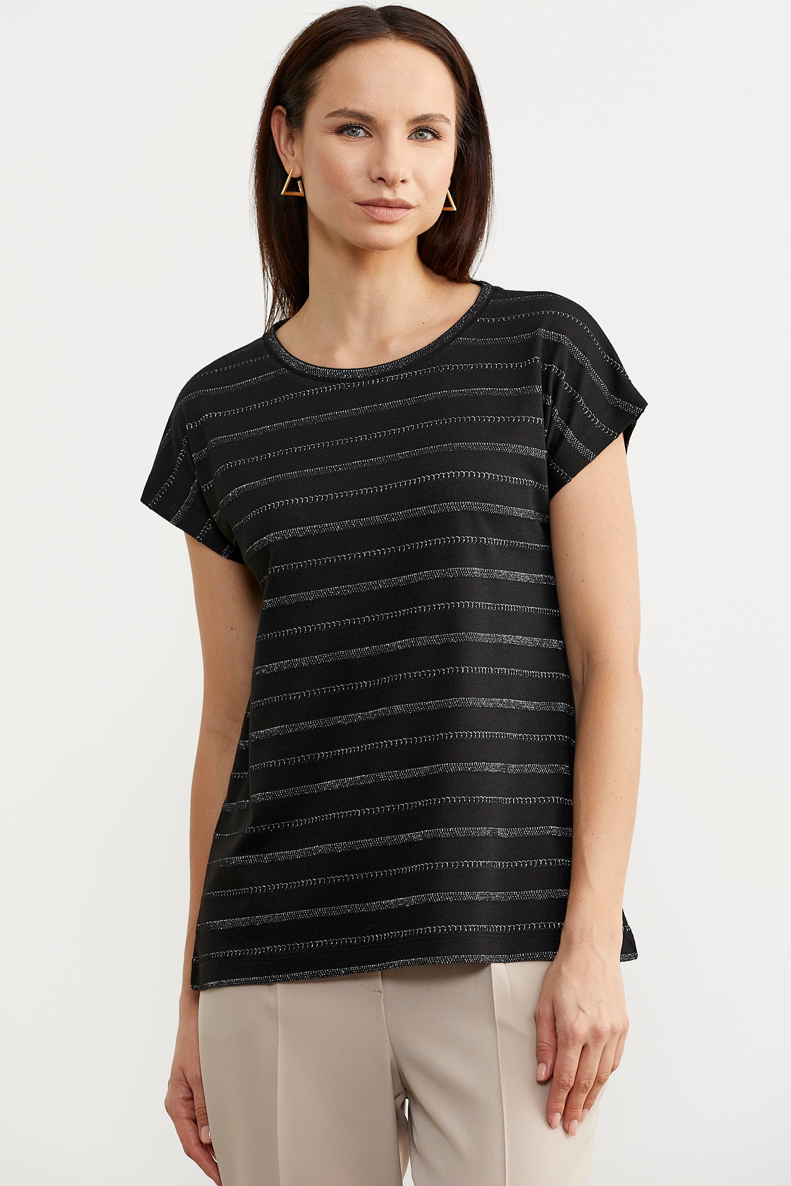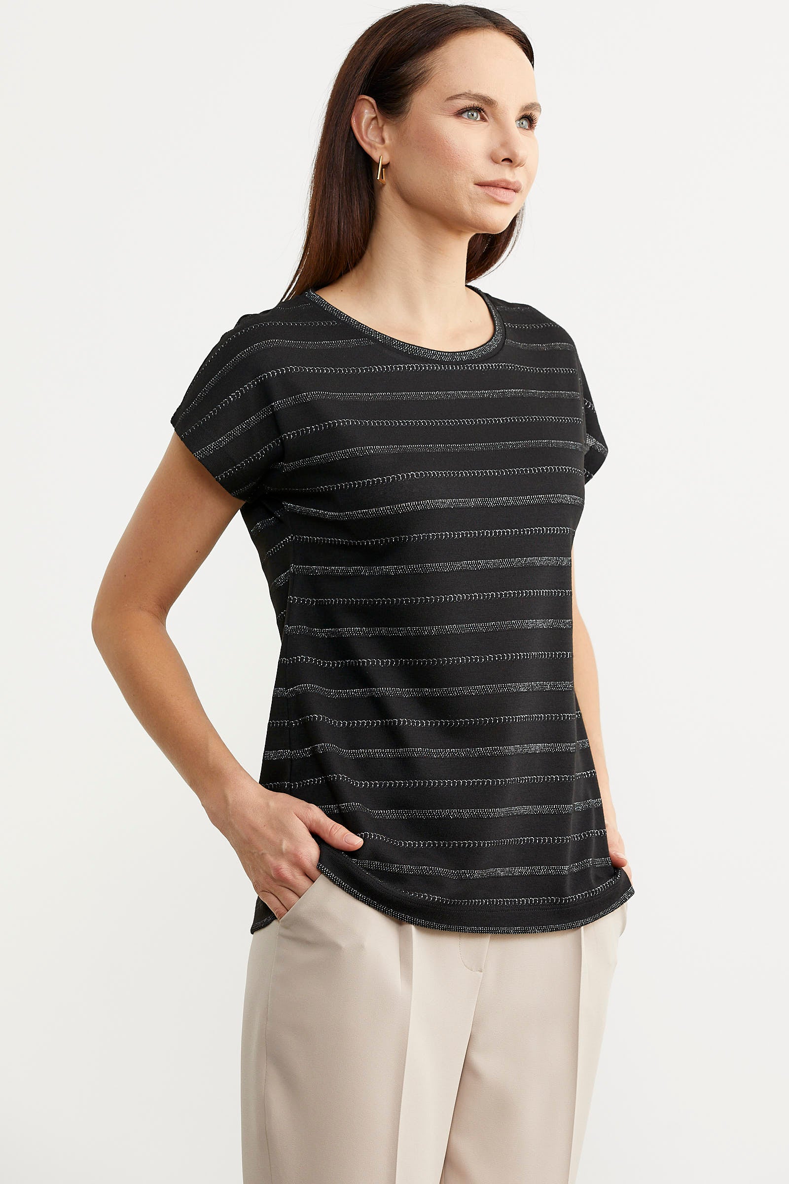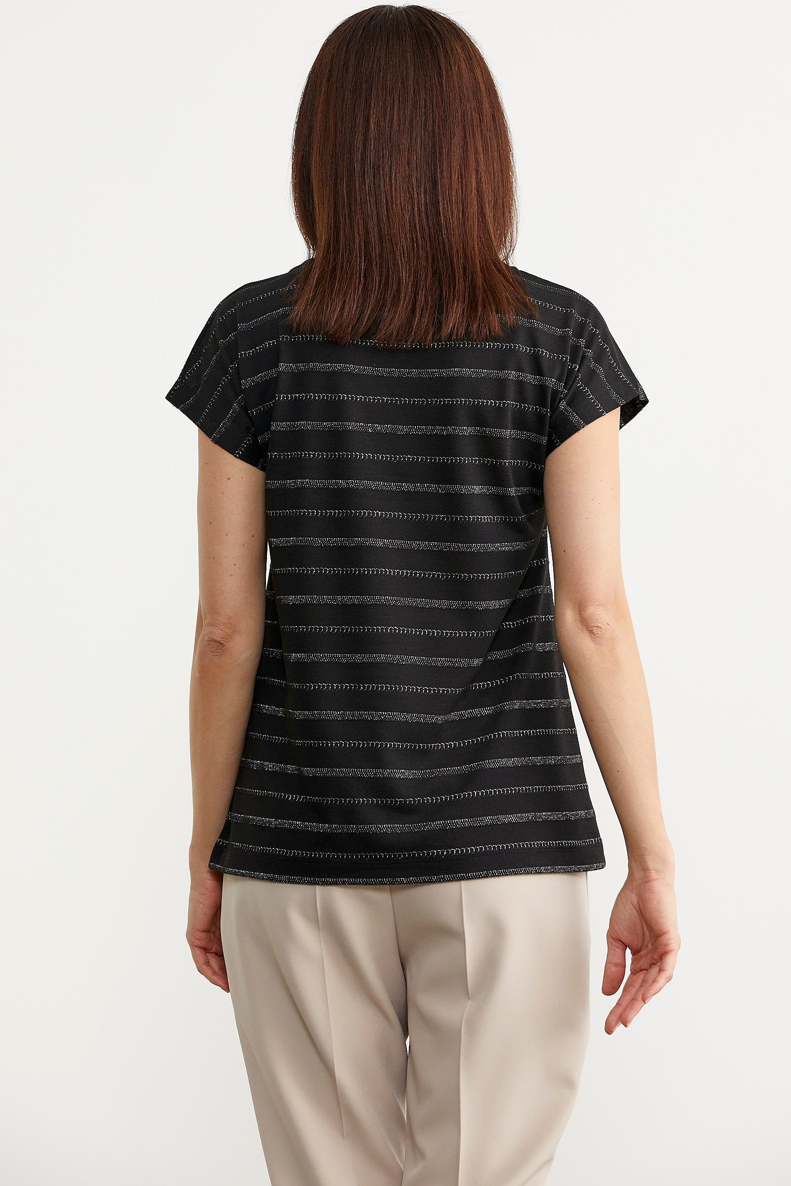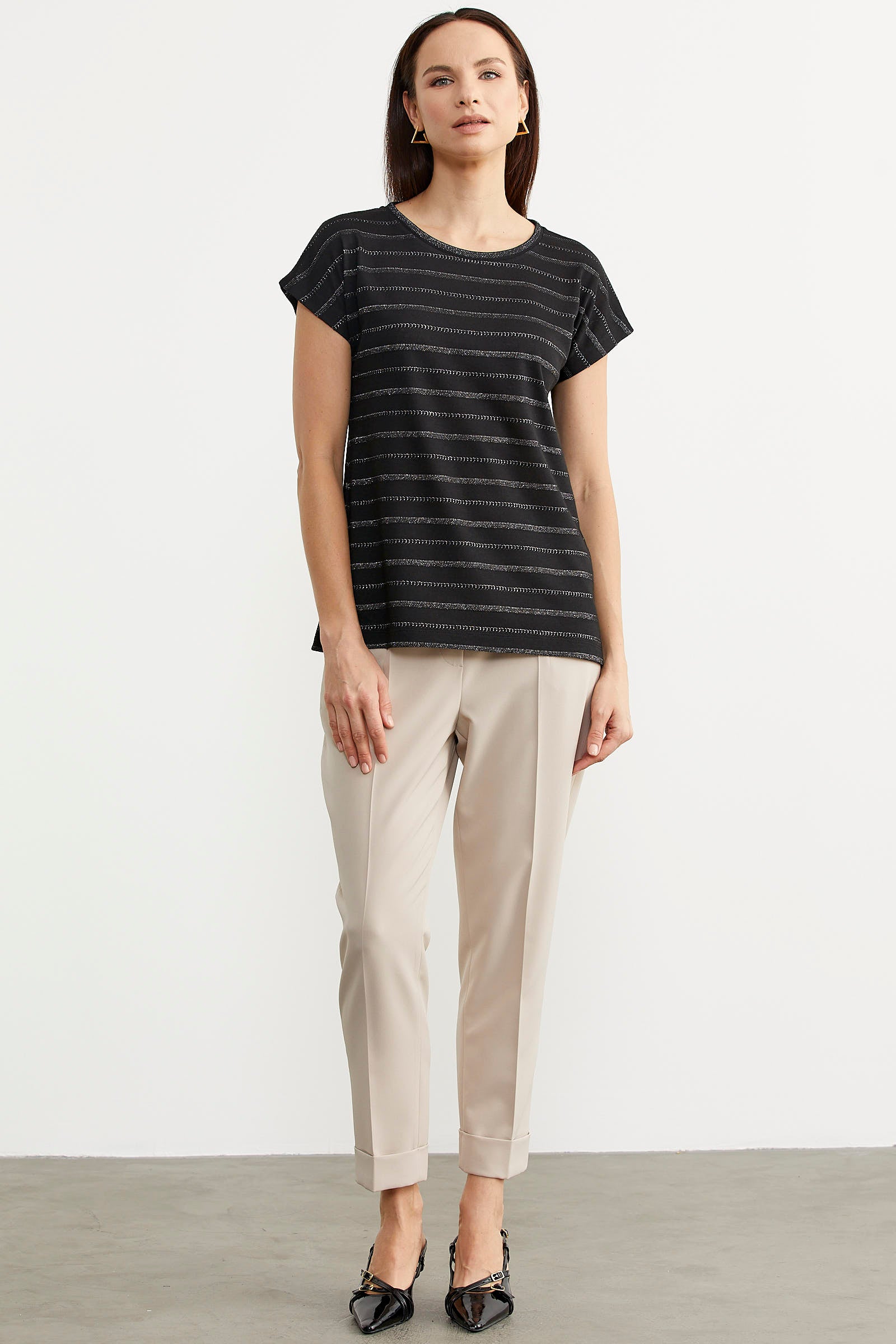 Yarasa Kol Çizgi Geçişli Tişört - Siyah
