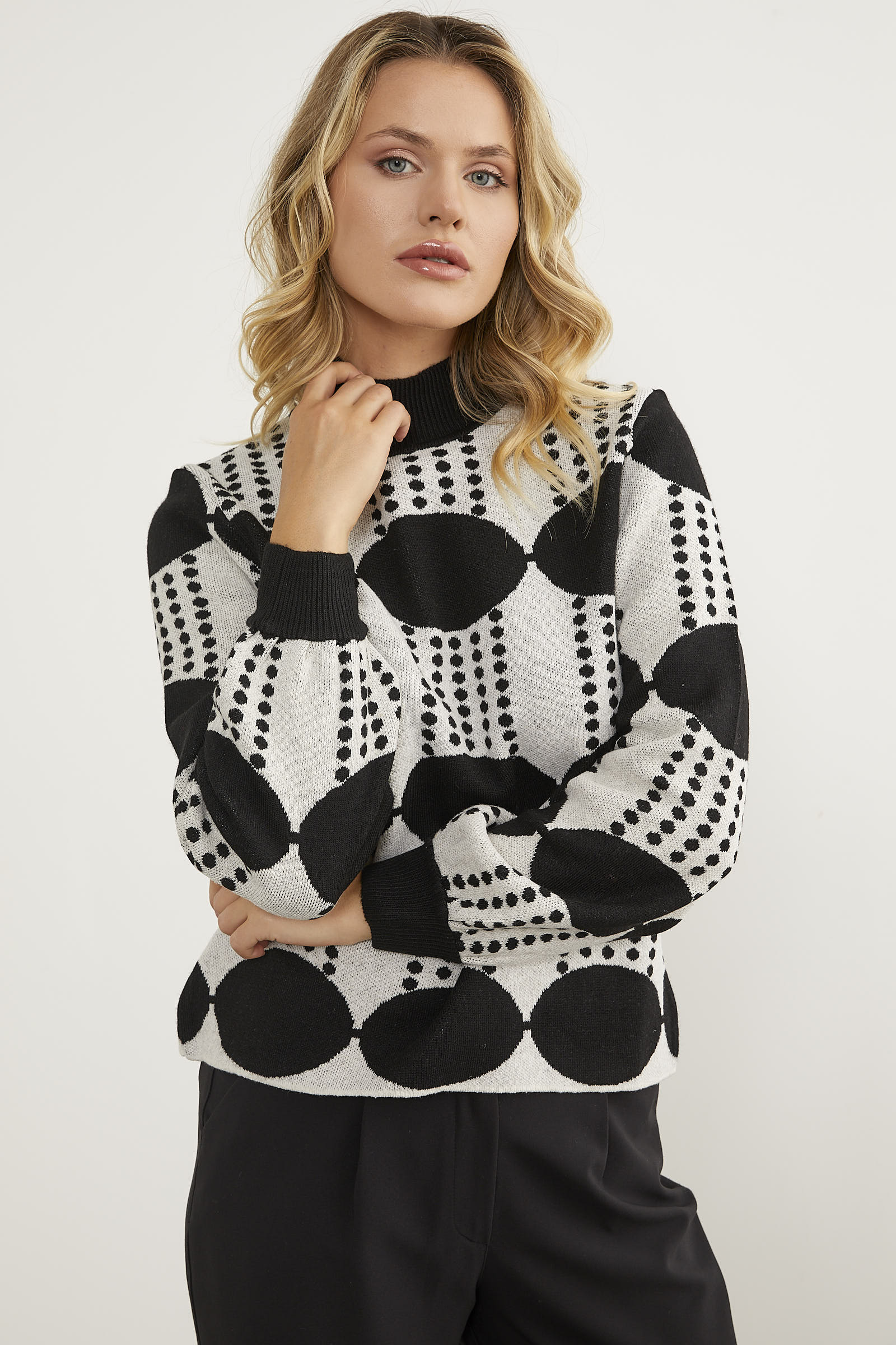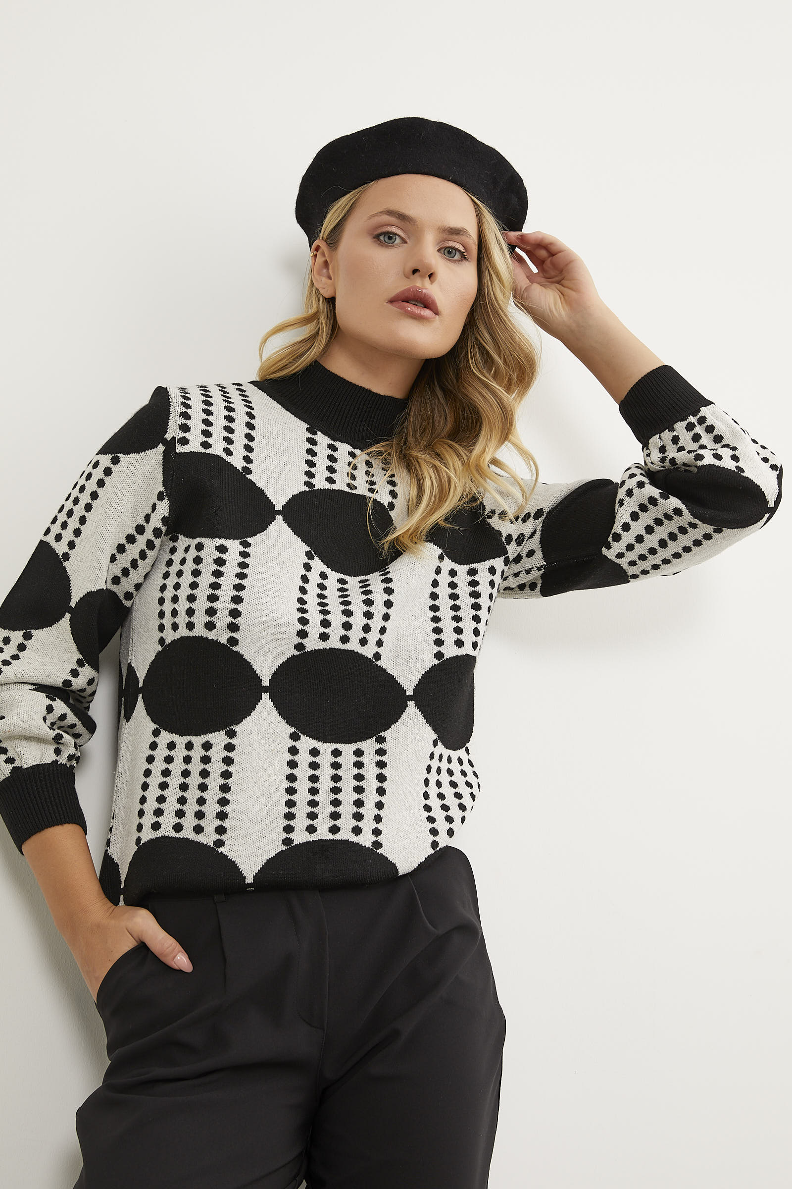 Canlı renkleri ve hareketli desenleriyle soğuk günlerin depresifliğine enerji katacak çift renkli triko kazak ile modern trendi yakalayabilirsiniz. Esnek ve rahat dokusu sayesinde konforlu hissedebileceksiniz.