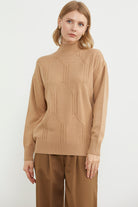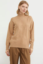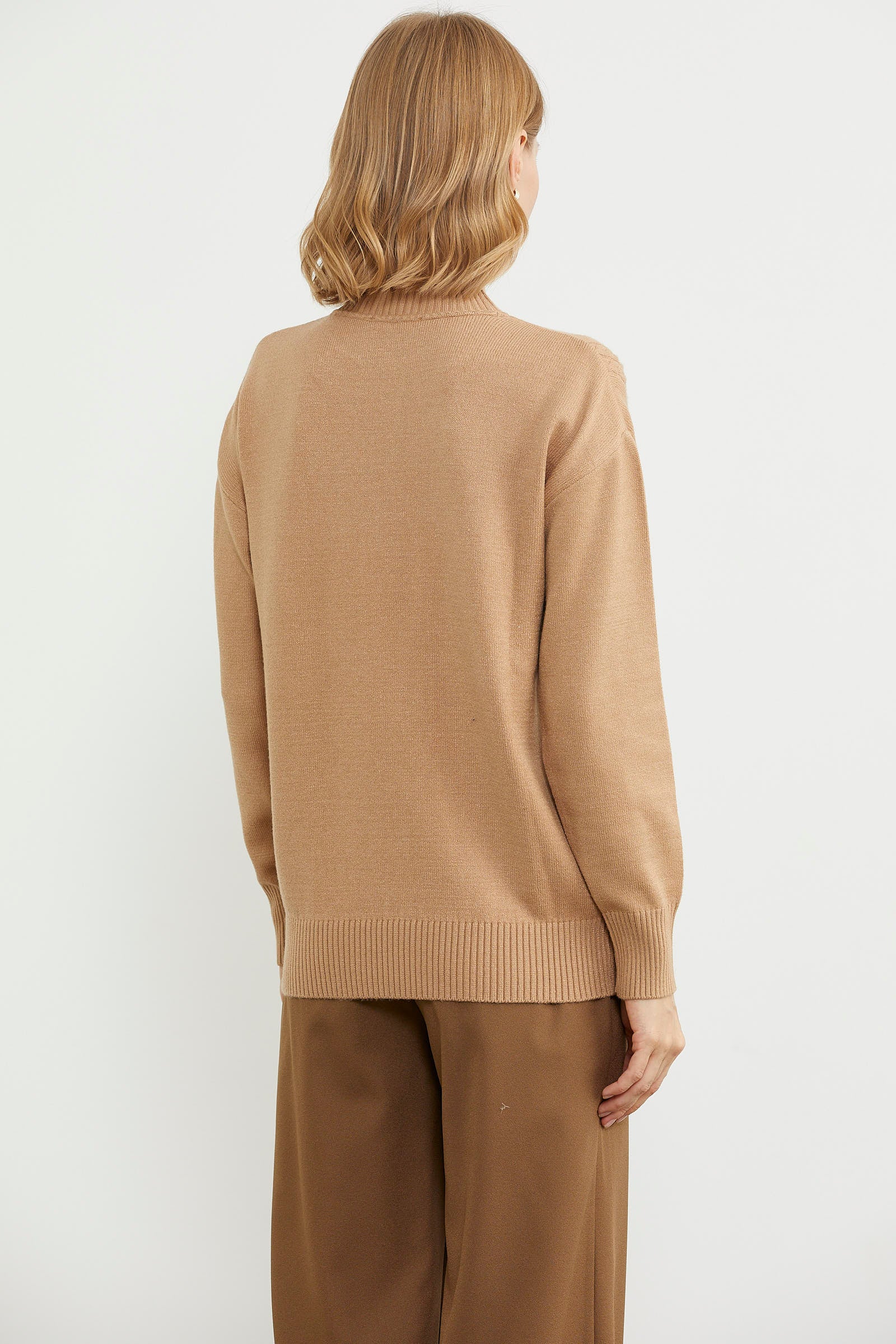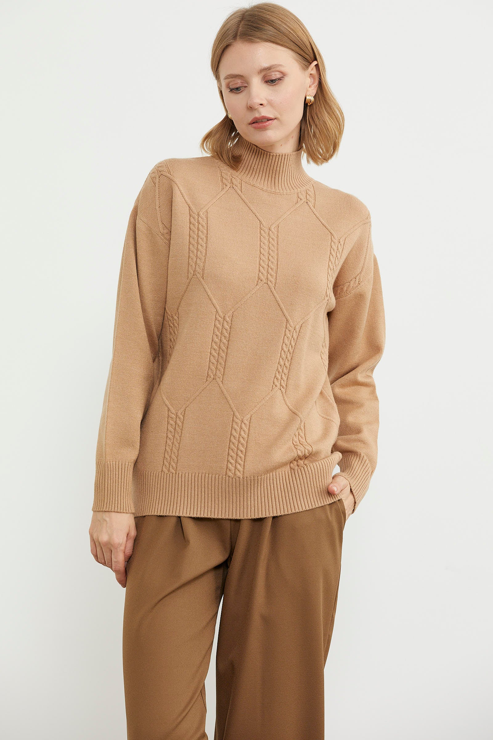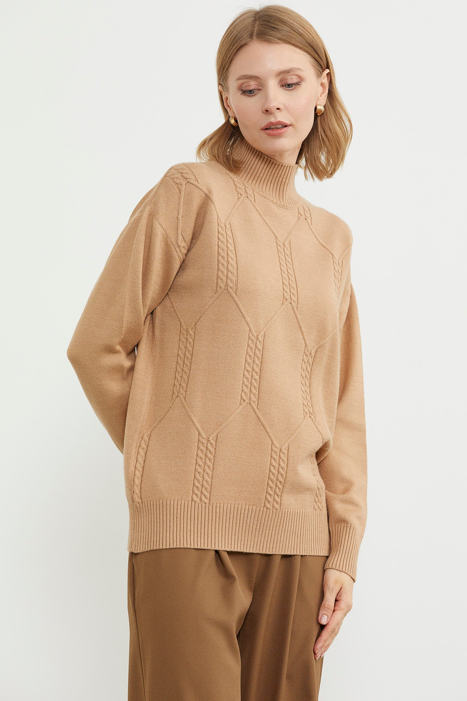Yarım Balıkçı Desenli Basic Triko Kazak - Bej