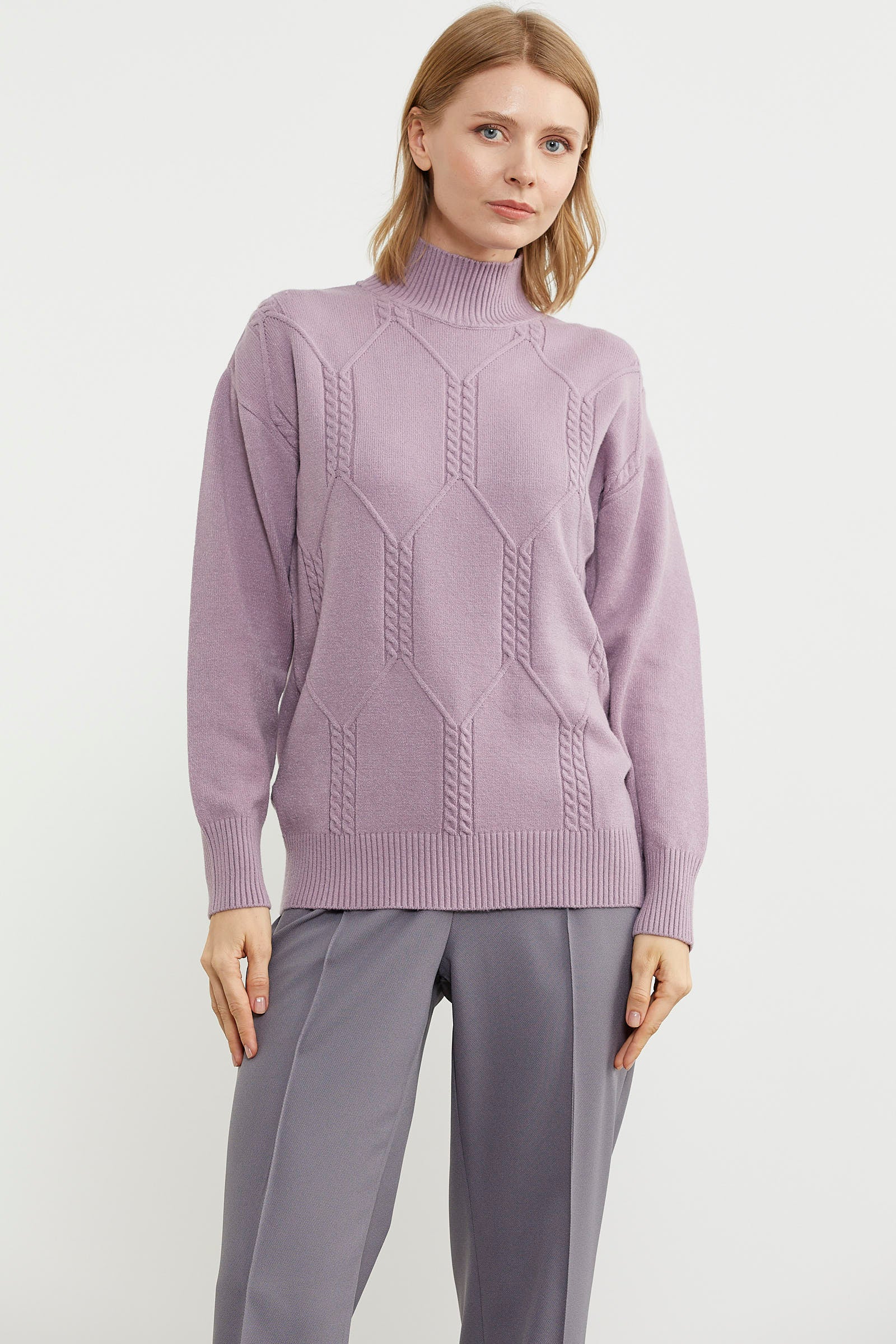 Yarım Balıkçı Desenli Basic Triko Kazak - Gül