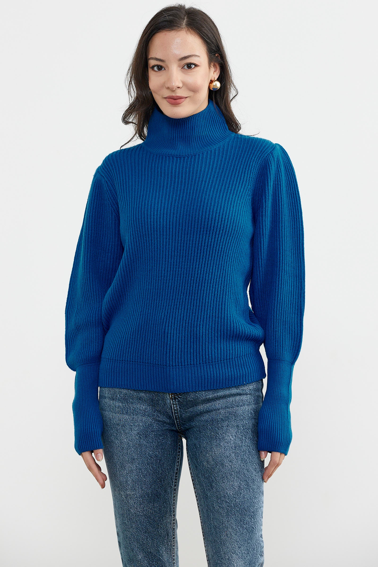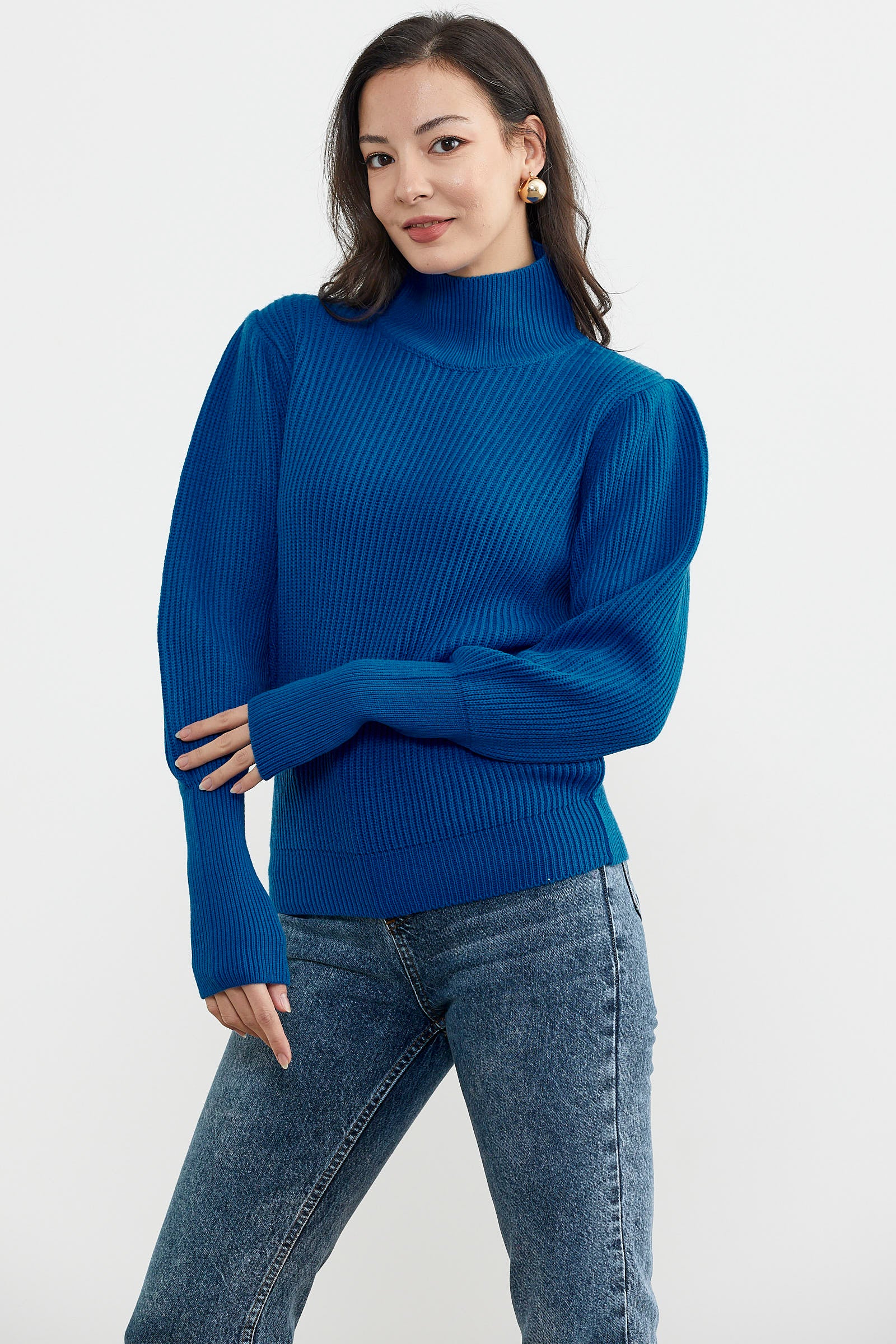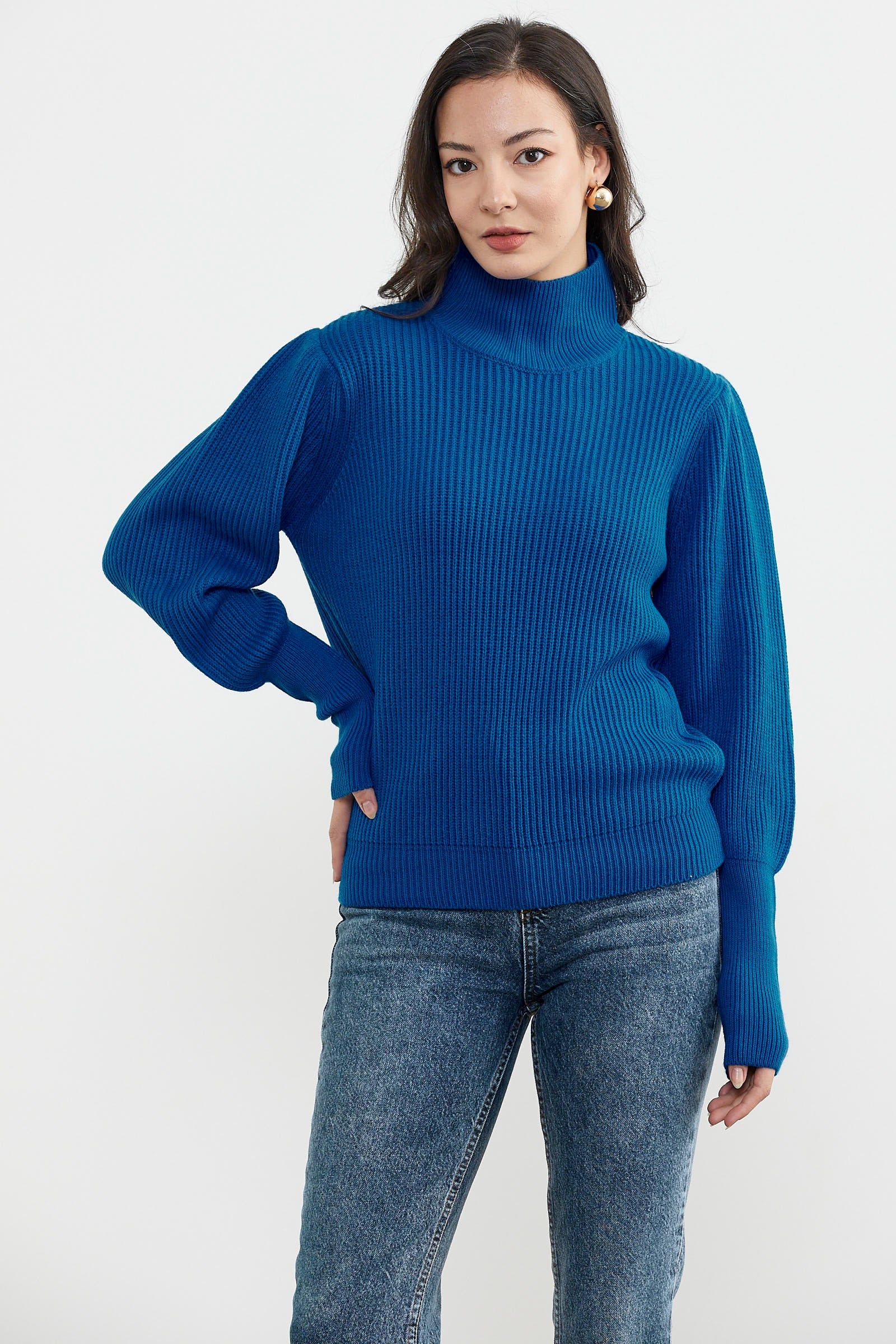 Kol uçları lastikli yarım balıkçı yakaya sahip uzun kollu basic esnek triko kazak ile acele günleriniz için kolay ve güzel bir seçim olacaktır.