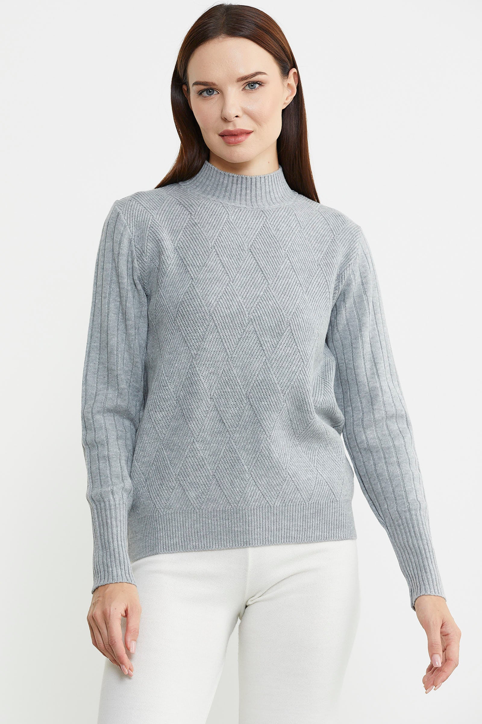 Yarım Balıkçı Motifli Triko Kazak - Gri
