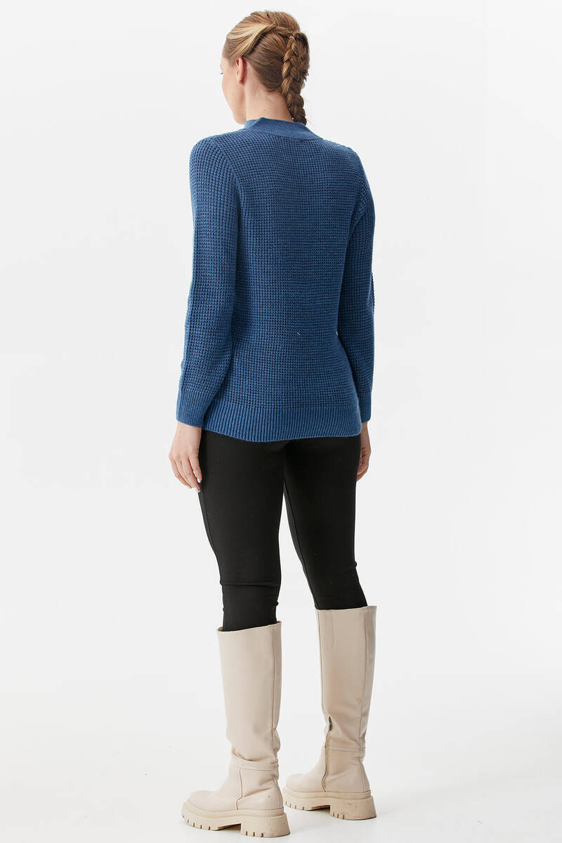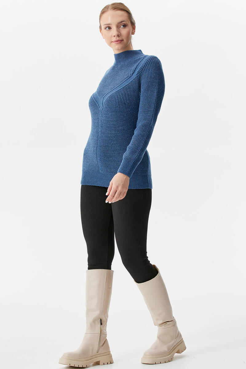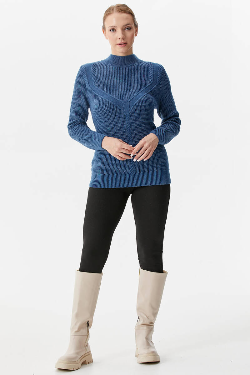 Yün karışımlı iplikten üretilen, yarım balıkçı yaka triko kazak, ilhamını sezon trendlerinden alıyor. Yakası, etek ucu ve manşetleri lastik örgülü trikonun yumuşak dokusuyla rahatlığı hissedin.