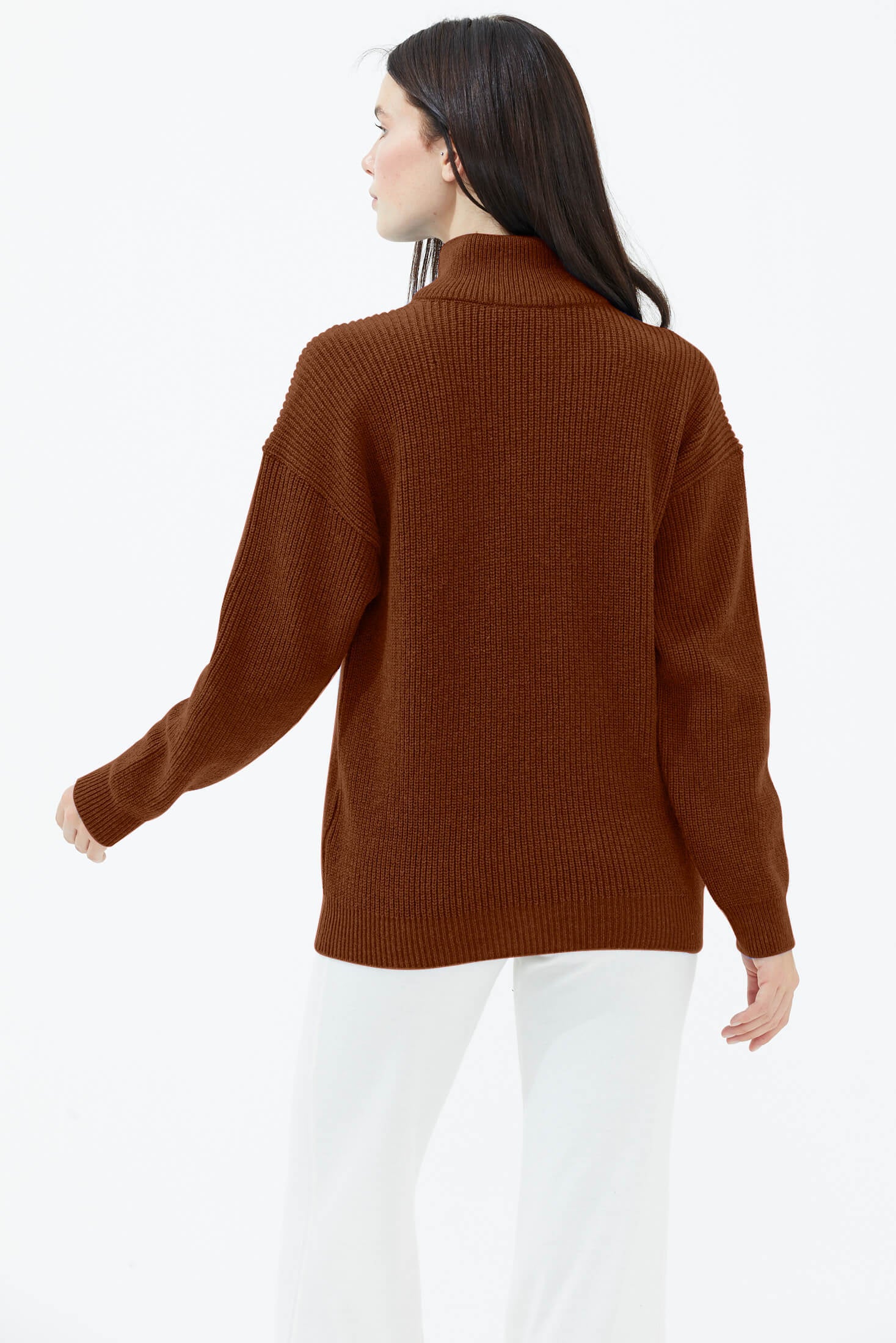 Yarım Balıkçı Yaka Fermuarlı Yün Triko Kazak - Kiremit
