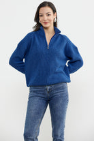Yarım Balıkçı Yaka Fermuarlı Yün Triko Kazak - Saks