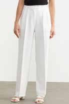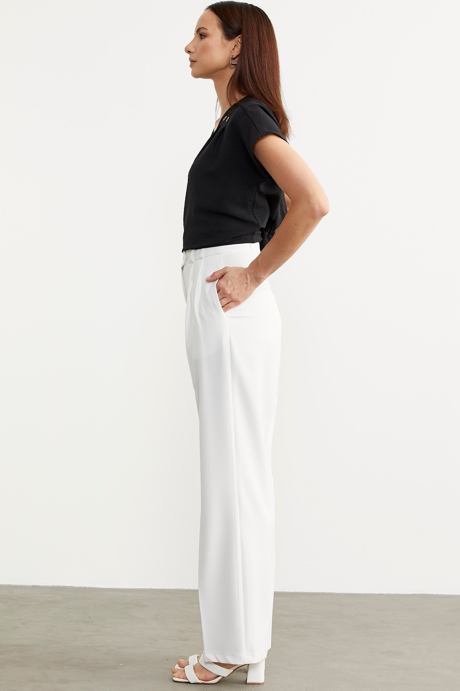Yüksek Bel Pileli Palazzo Pantolon - Ekru