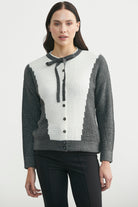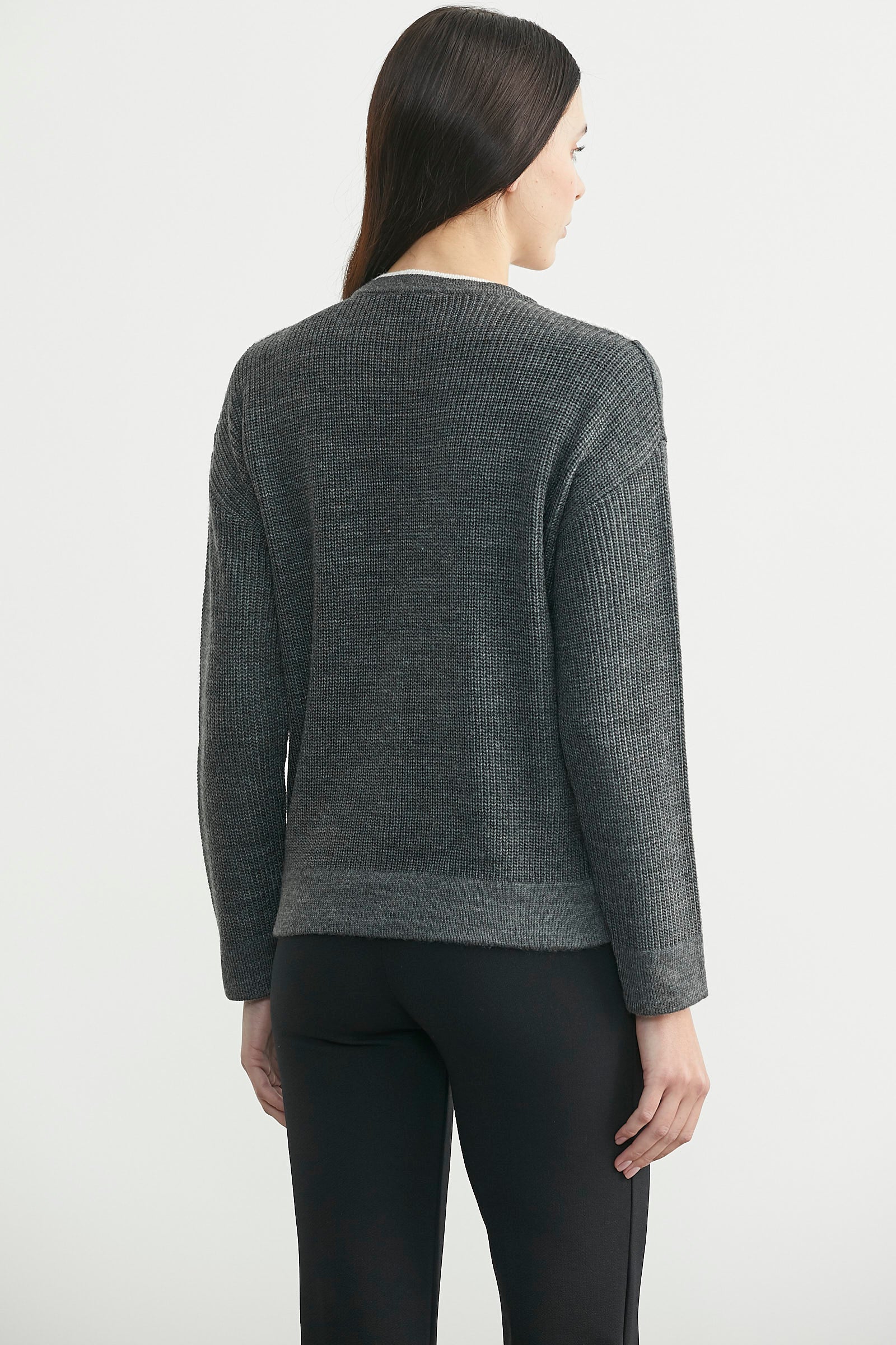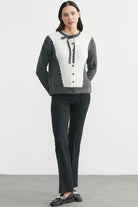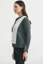 Yünlü Çift Renk Düğmeli Triko Hırka - Koyu Gri