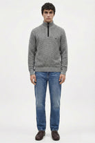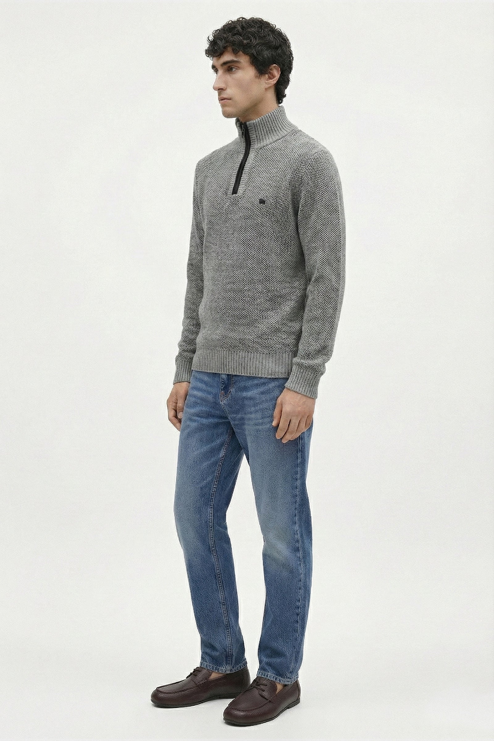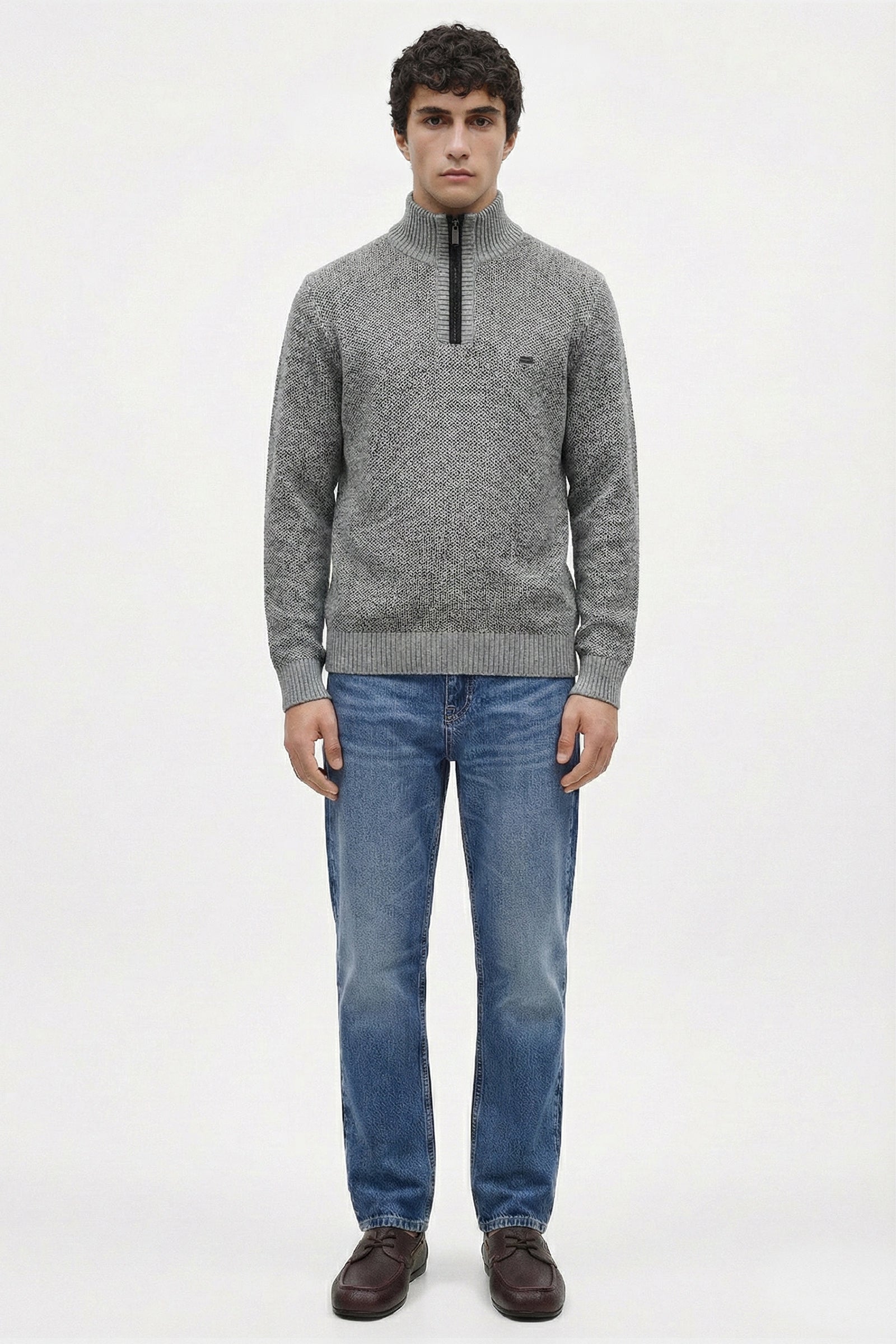 Yünlü Yarım Fermuarlı Triko Kazak - Gri - Siyah