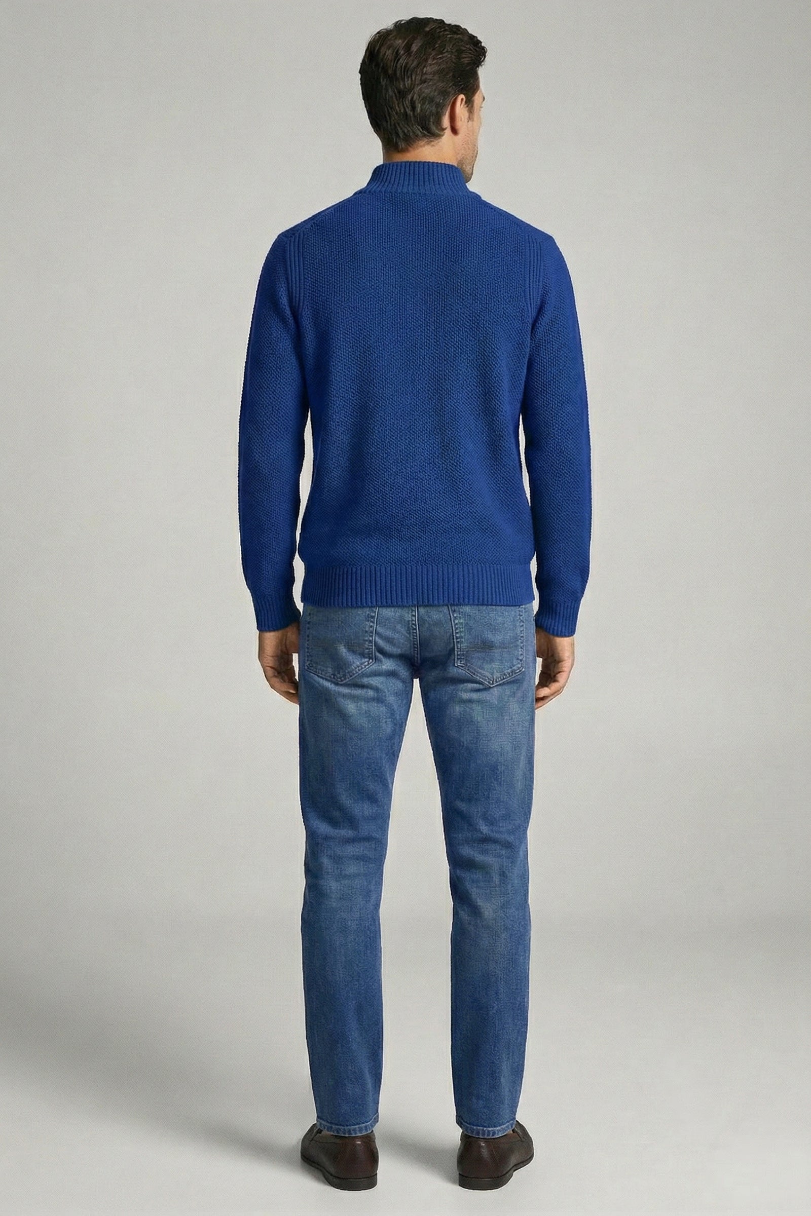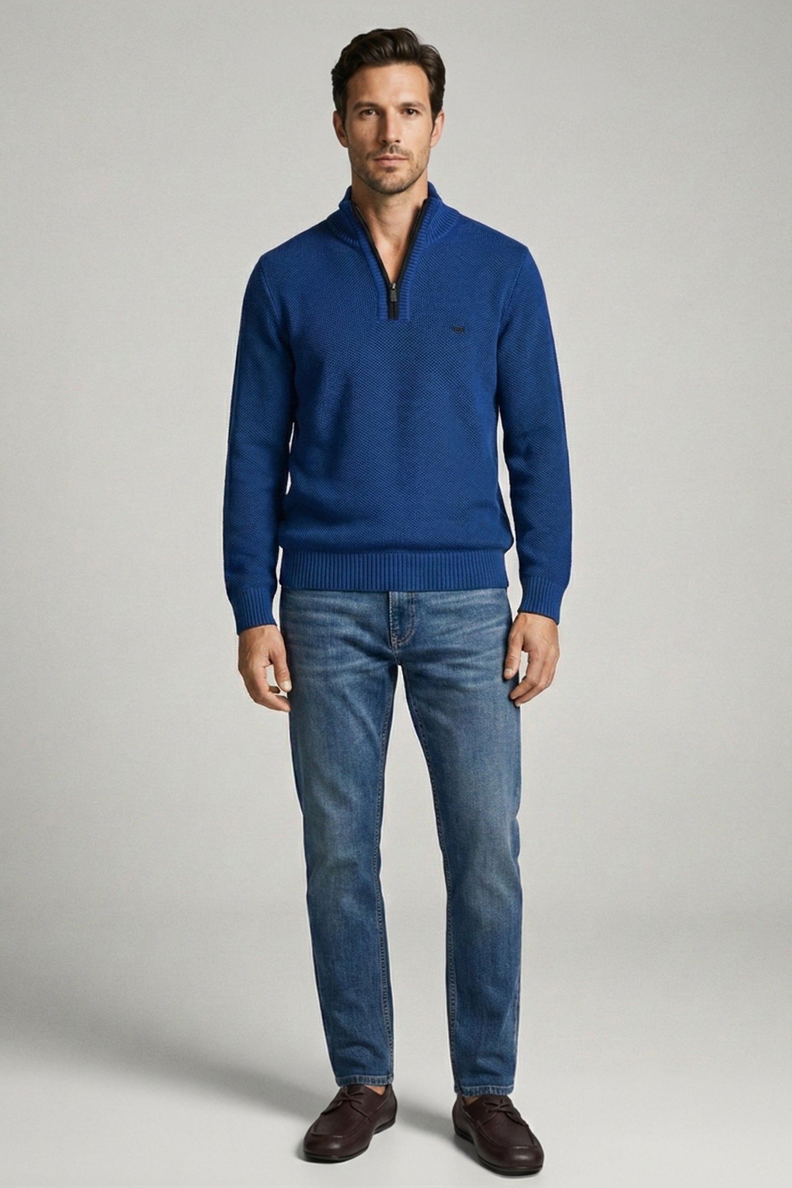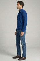 Yünlü Yarım Fermuarlı Triko Kazak - Saks - Siyah