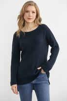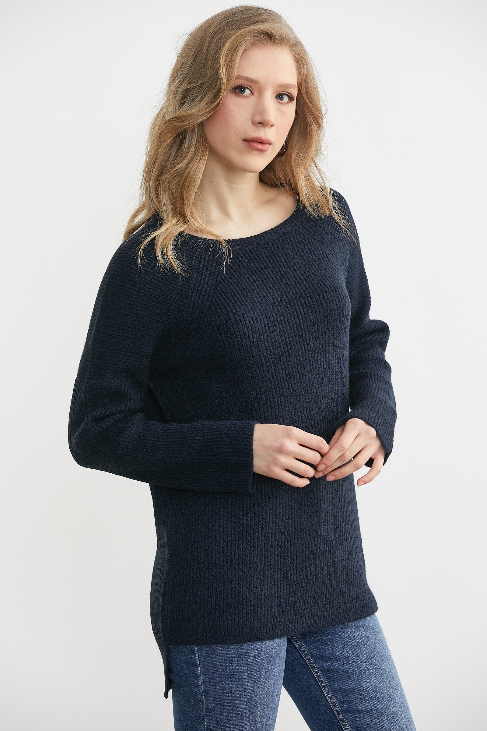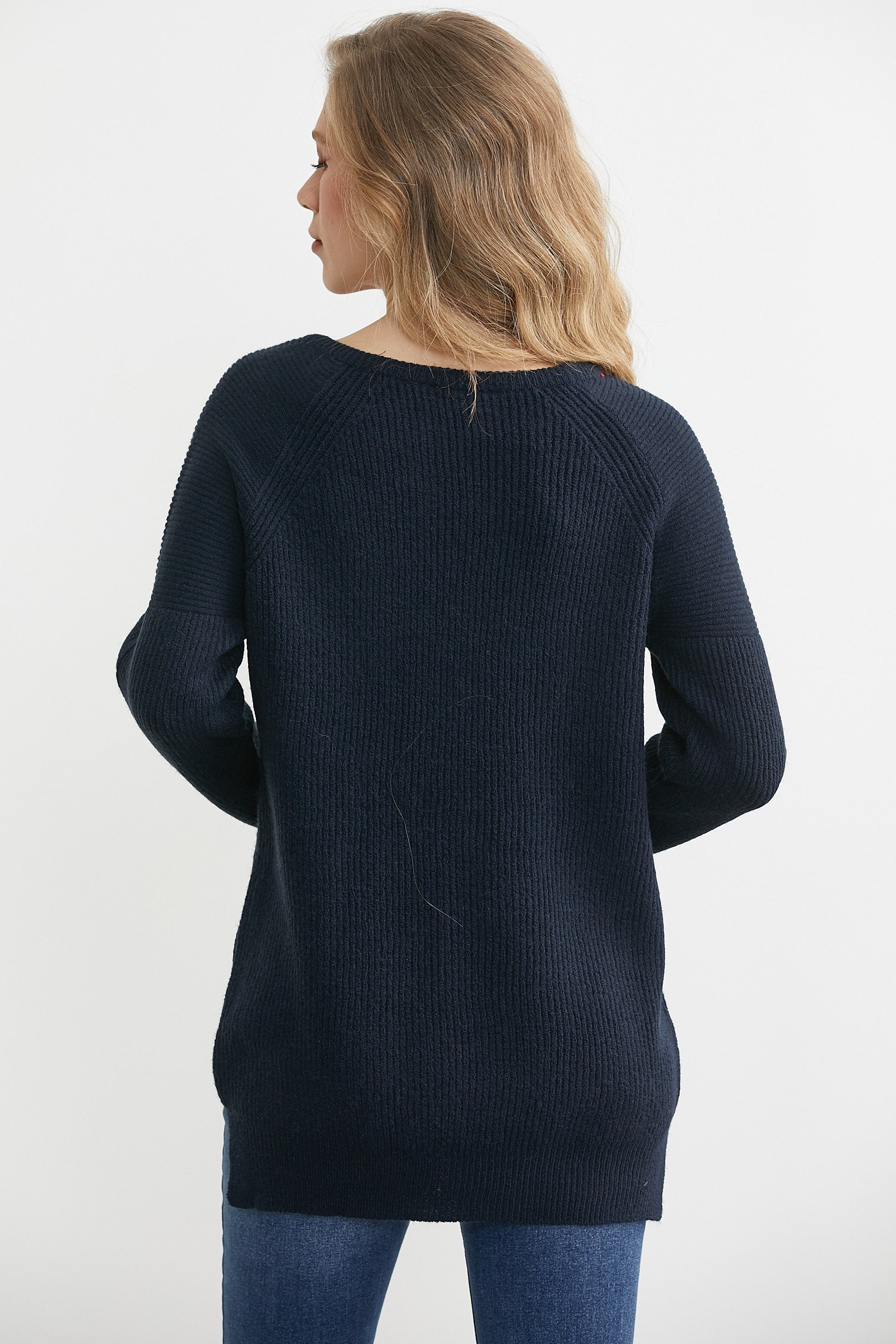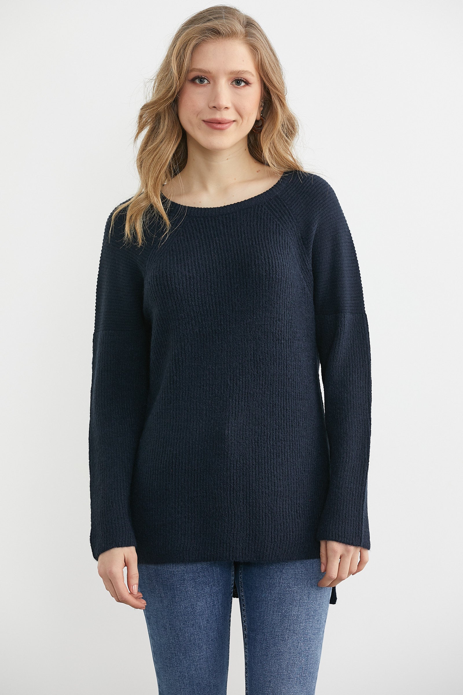 Yuvarlak Yaka Arkası Uzun Triko Kazak - Lacivert