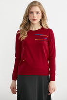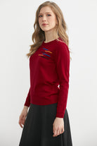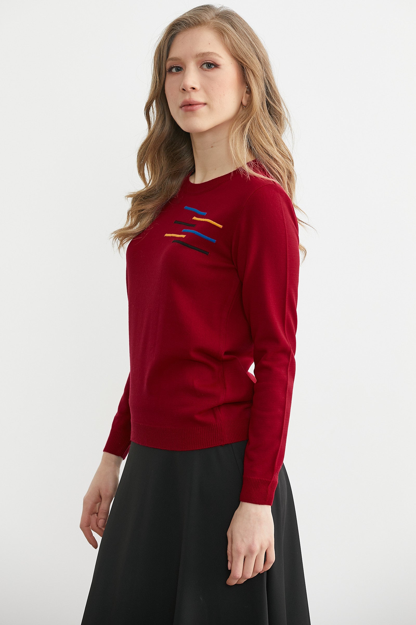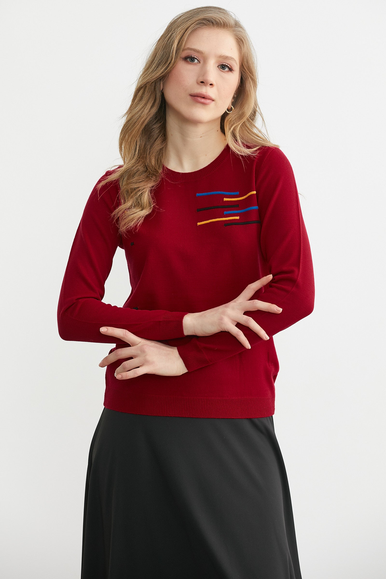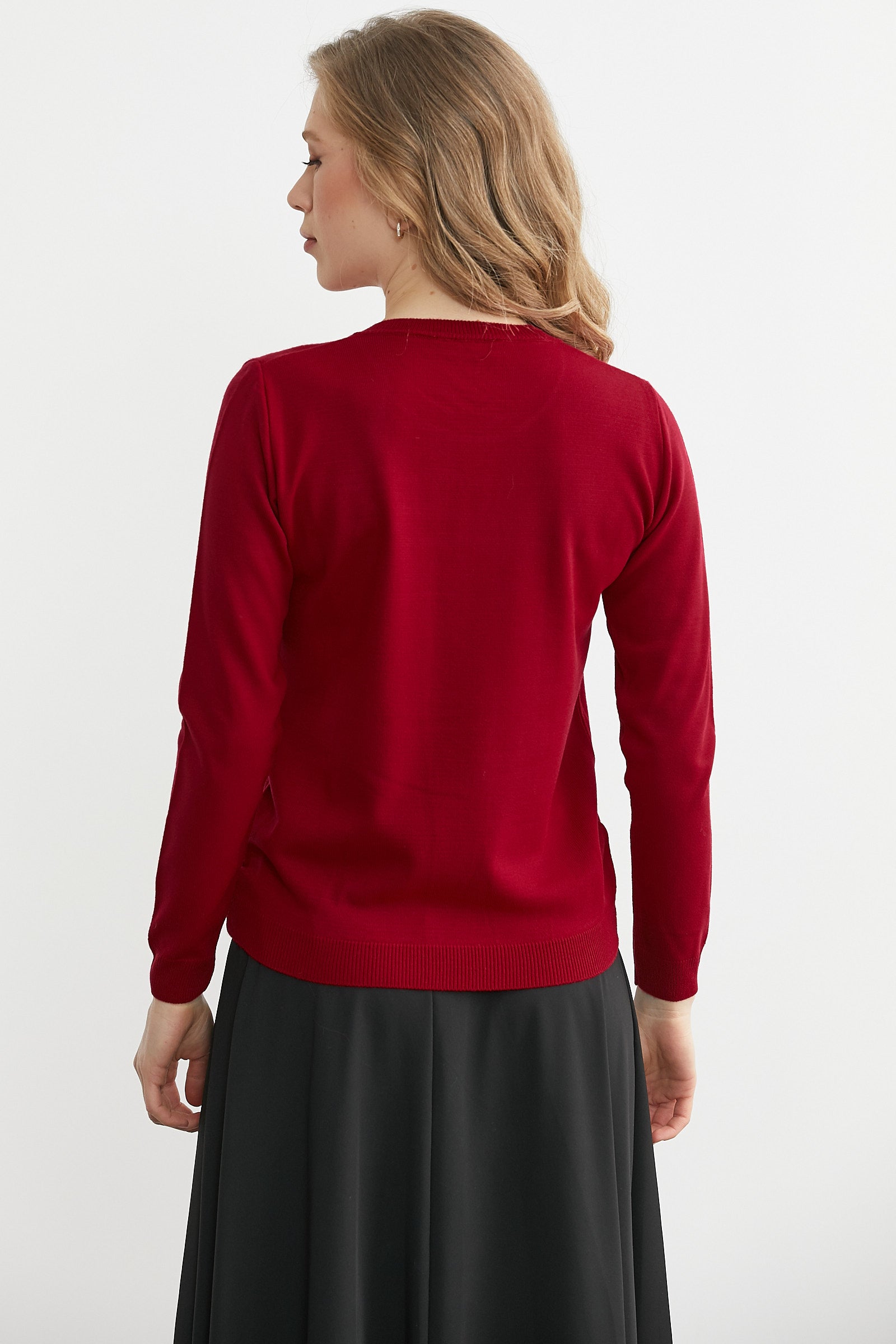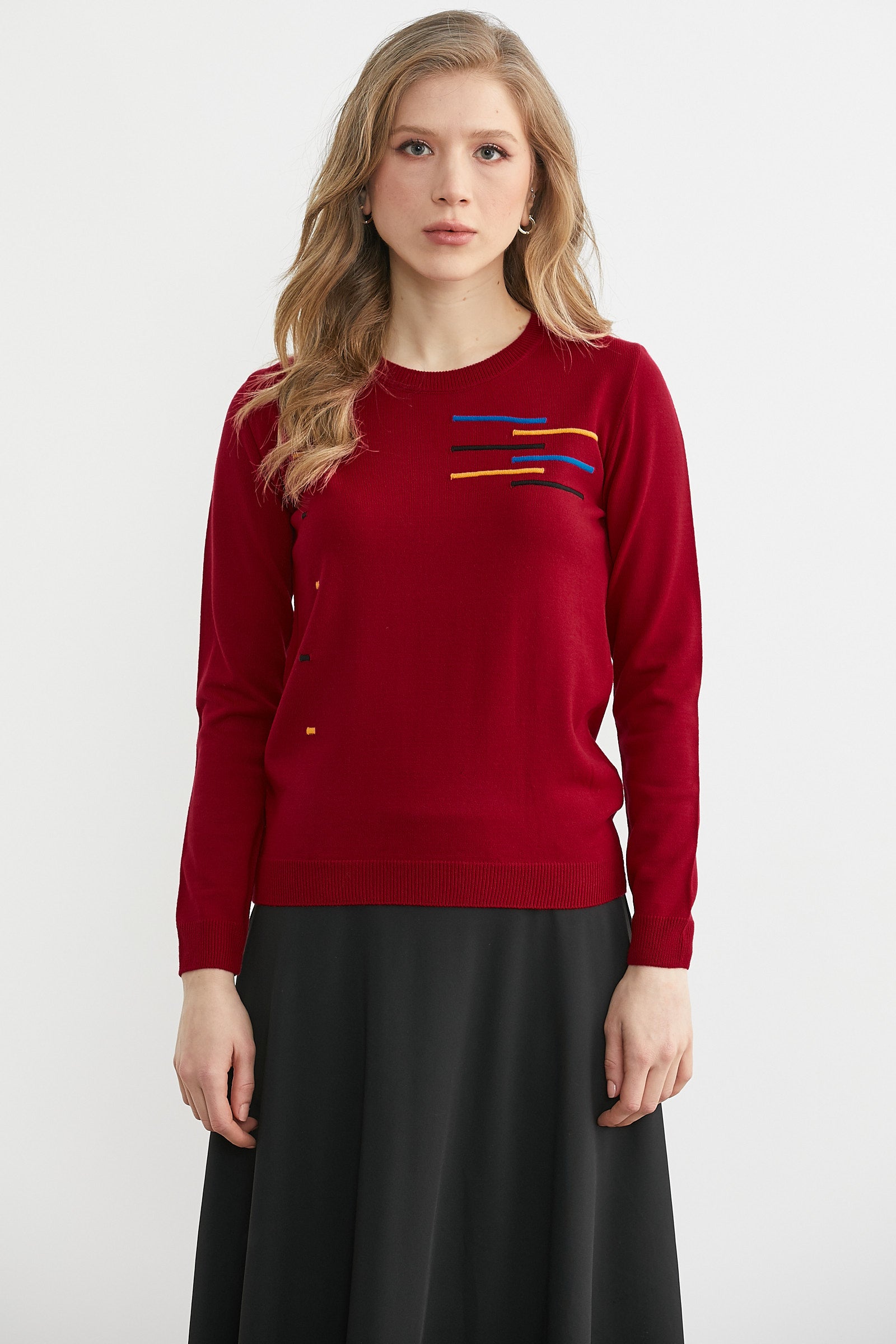 Yuvarlak Yaka Desenli Triko Kazak - Kırmızı