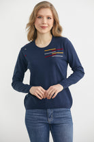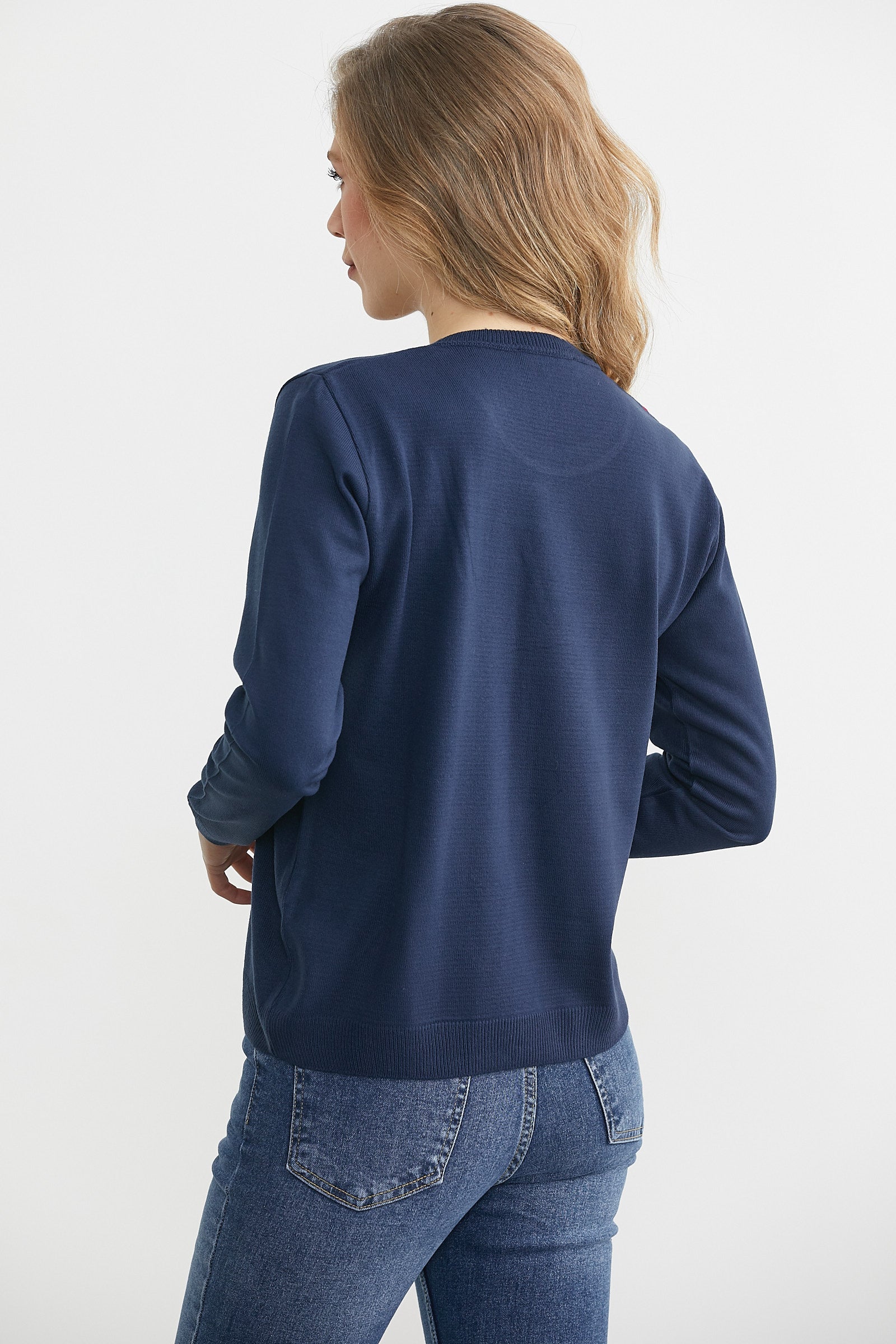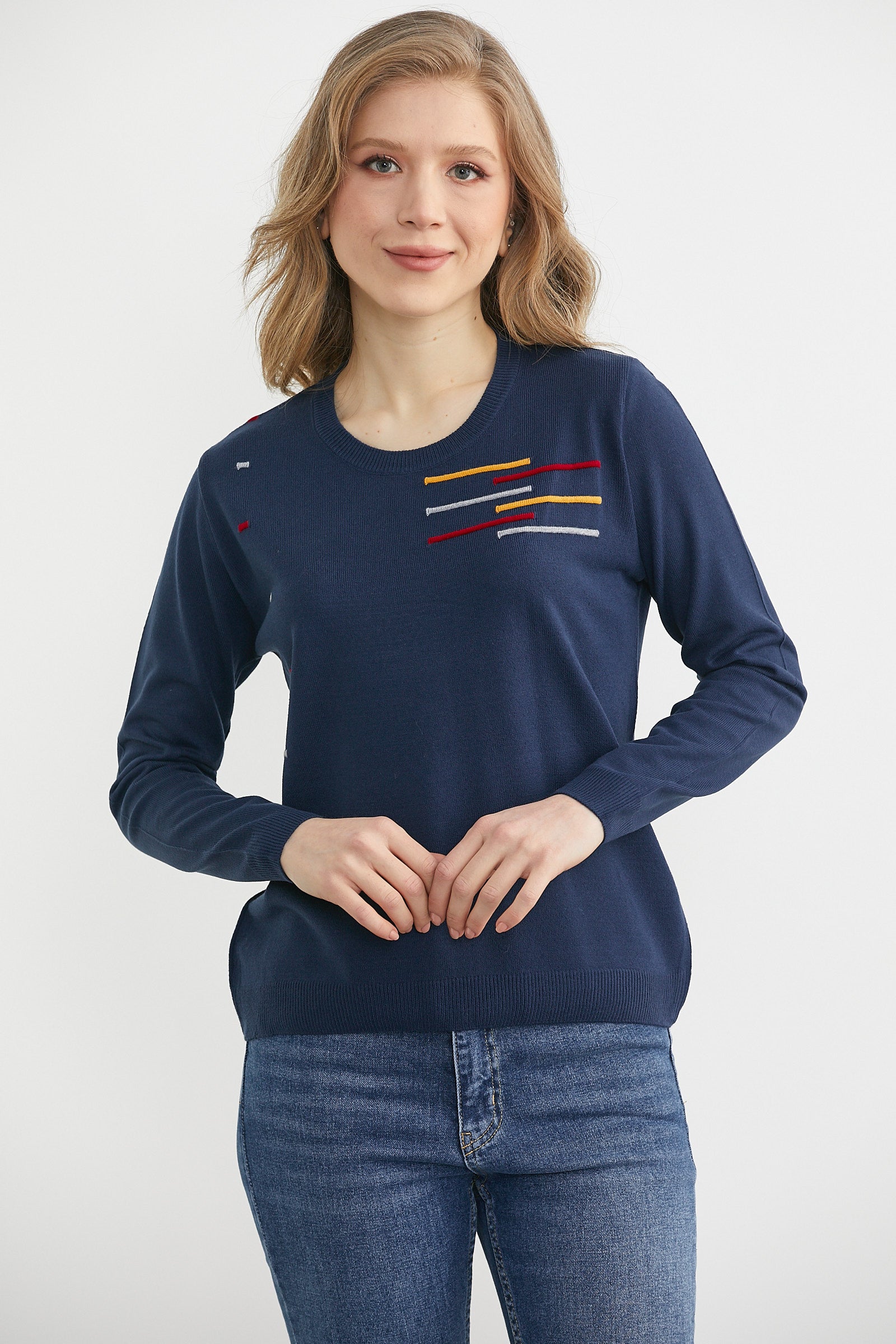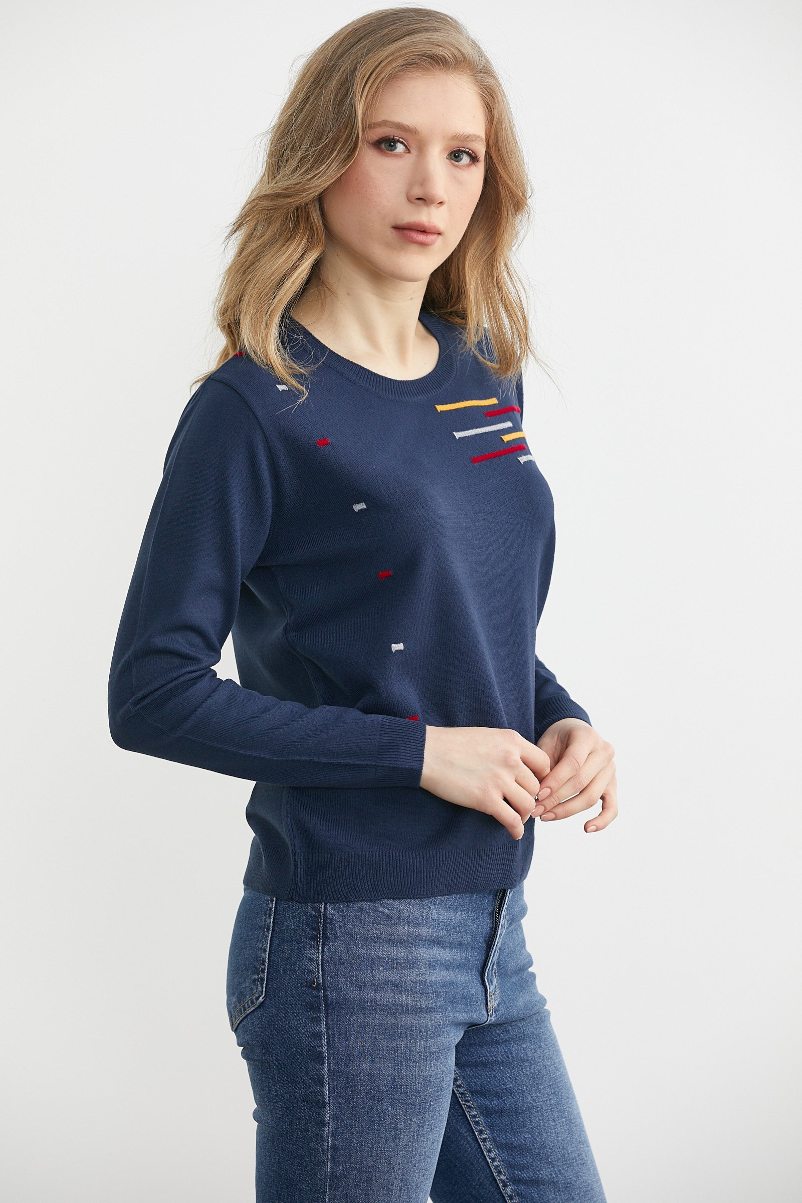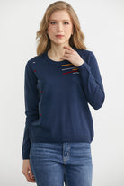 Yuvarlak Yaka Desenli Triko Kazak - Lacivert
