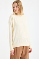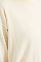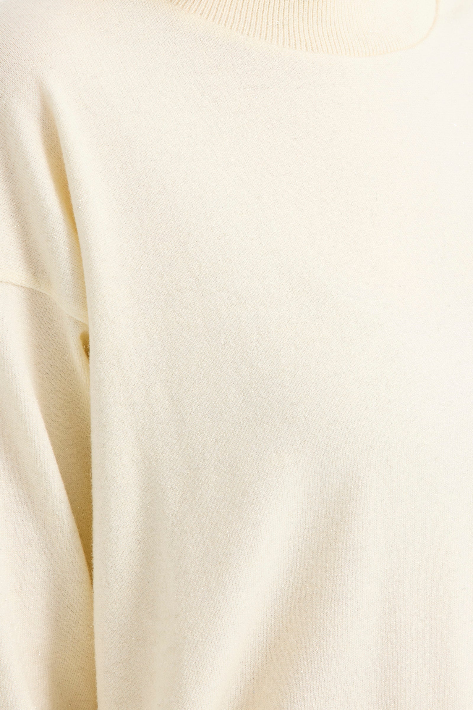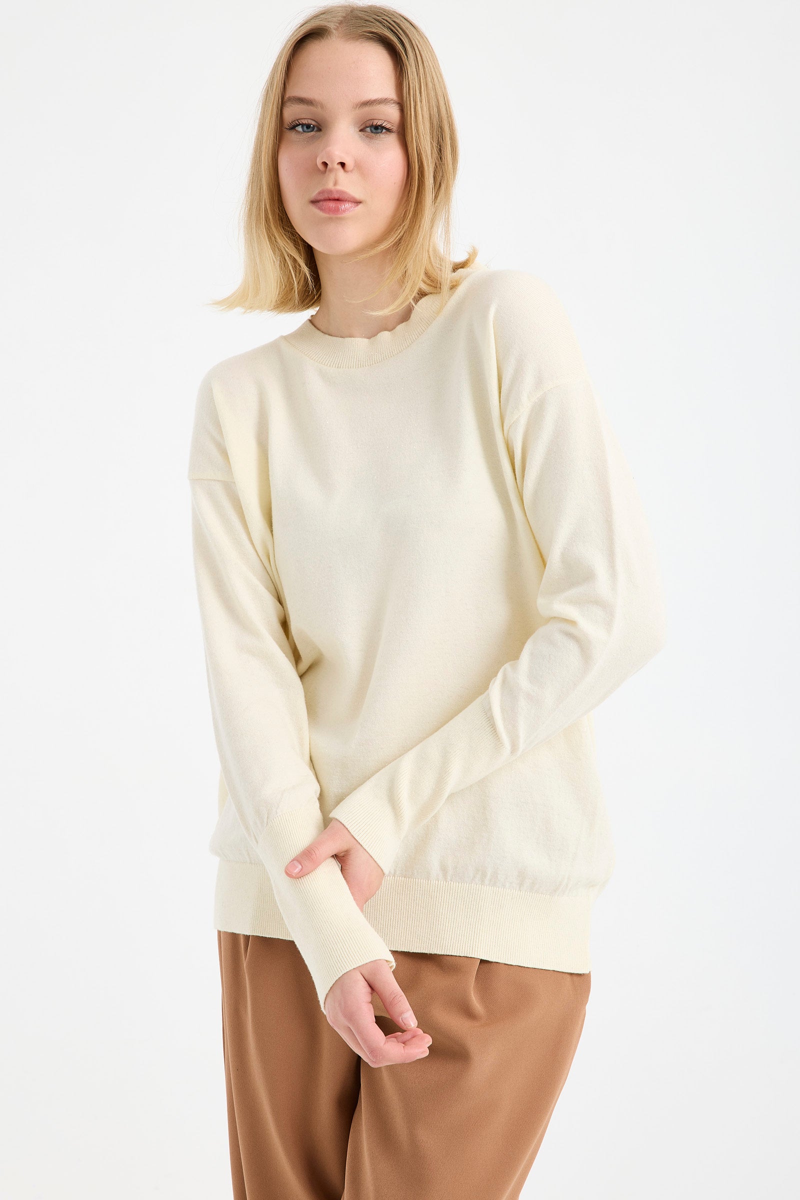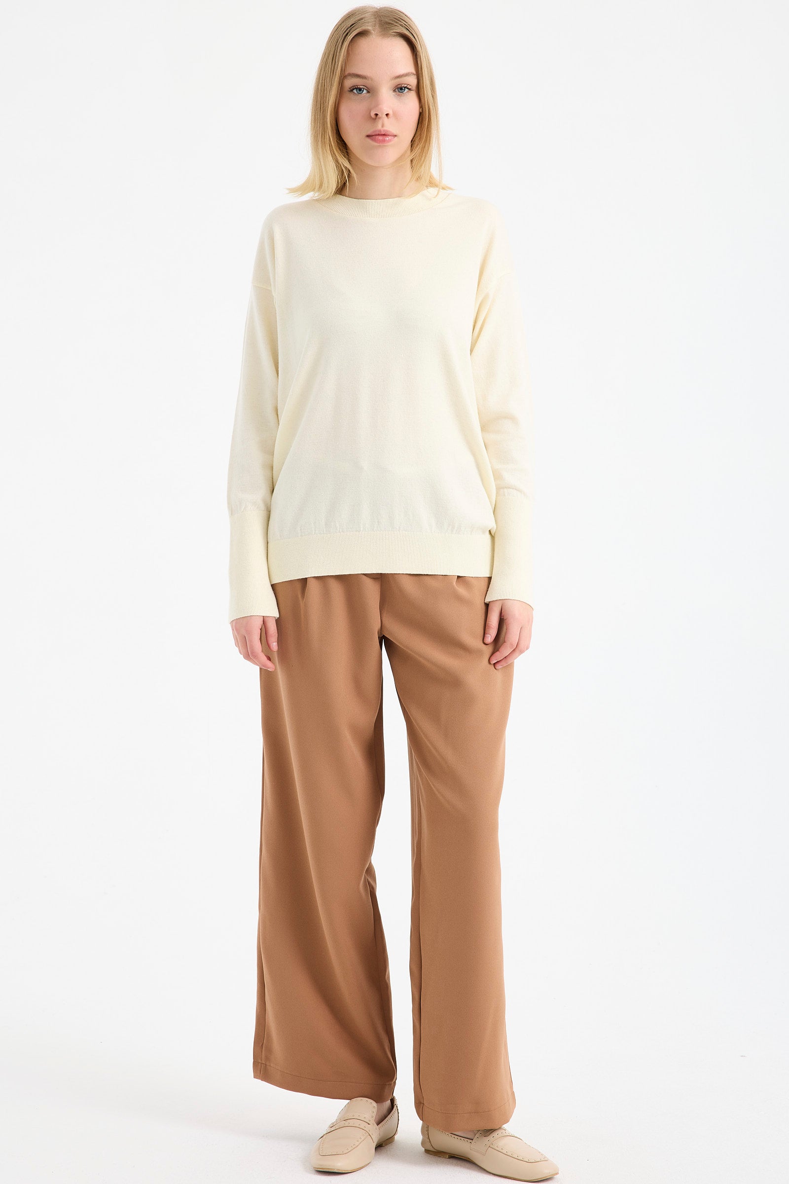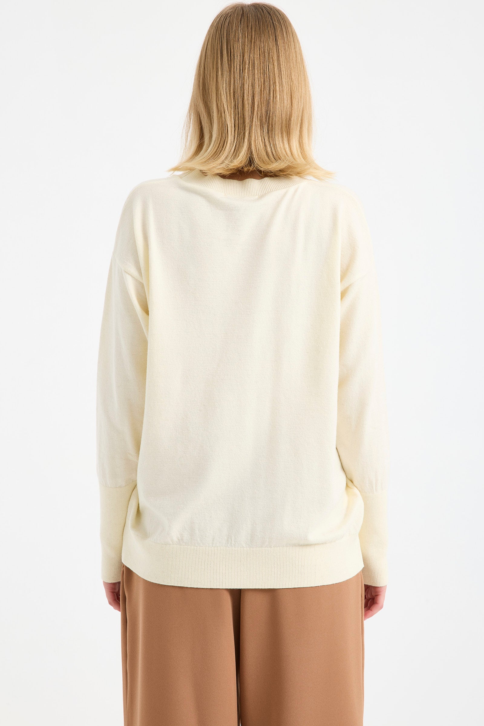Yuvarlak Yaka Simli Triko Kazak - Ekru