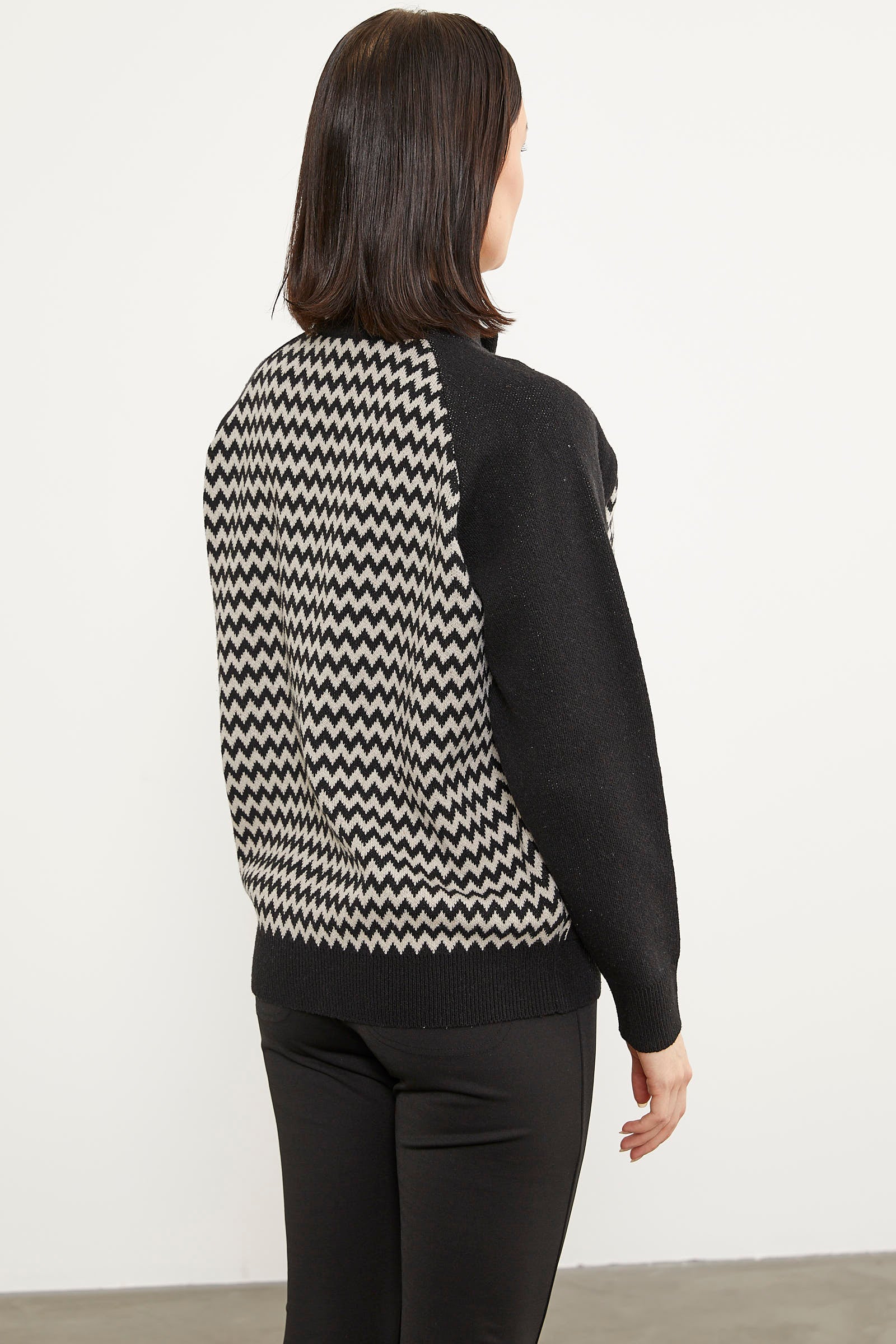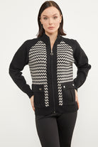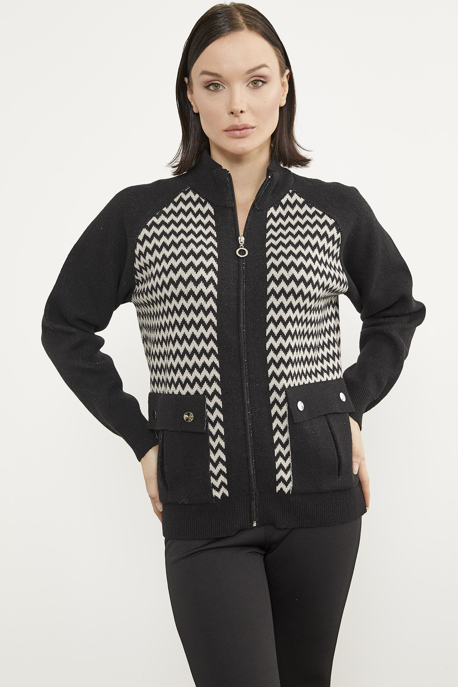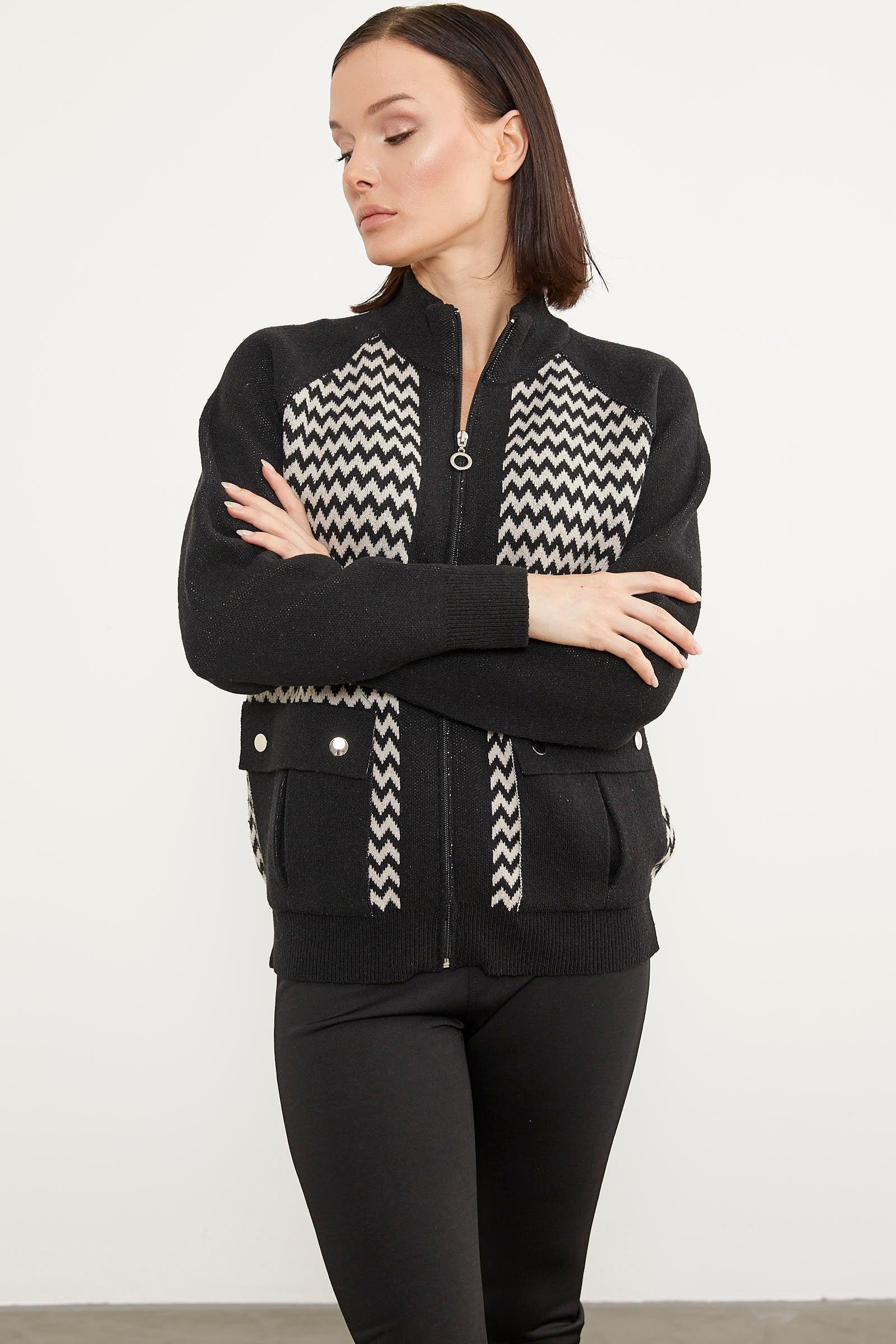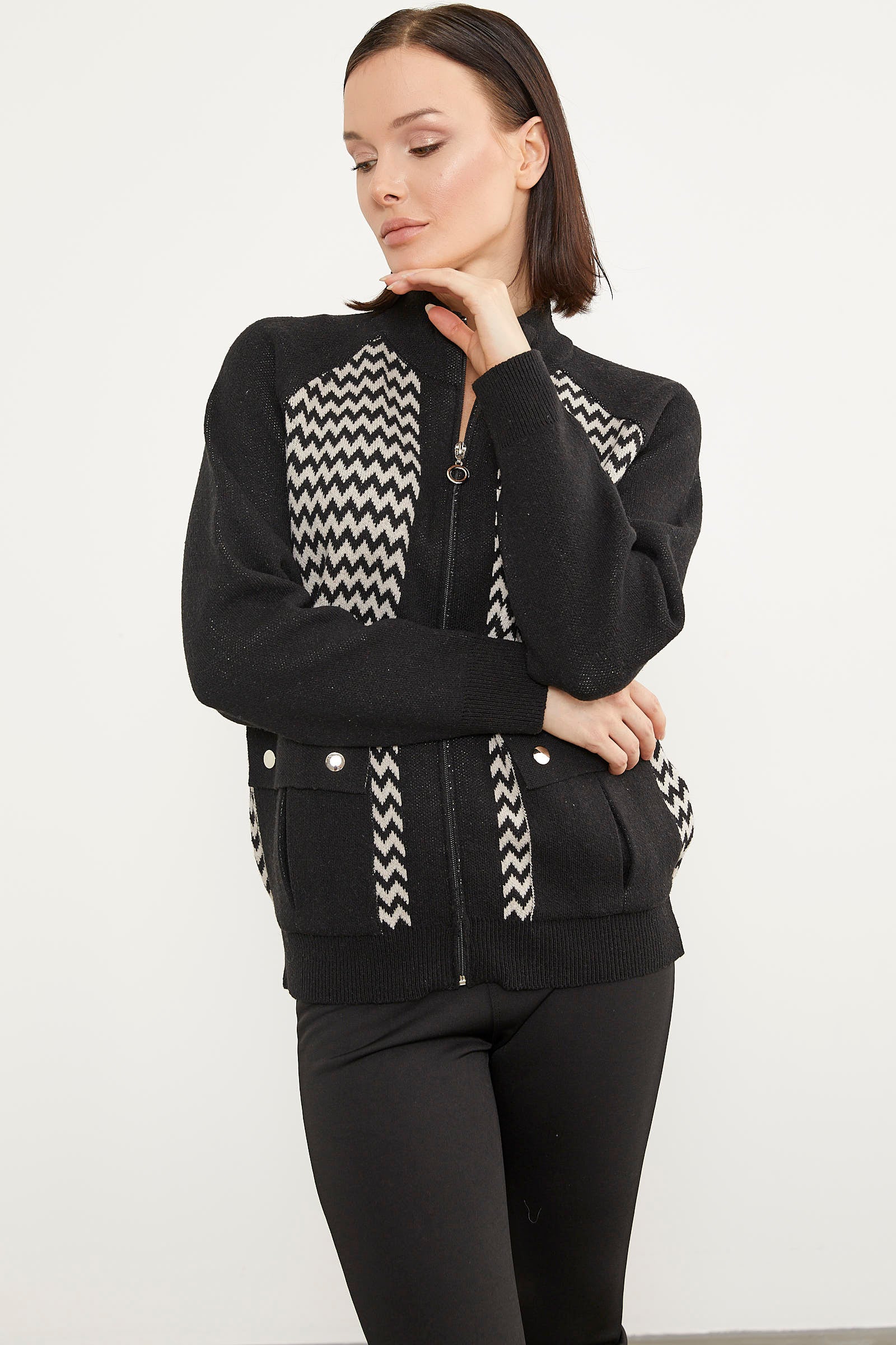Zik Zak Desenli Çift Renk Triko Ceket - Siyah