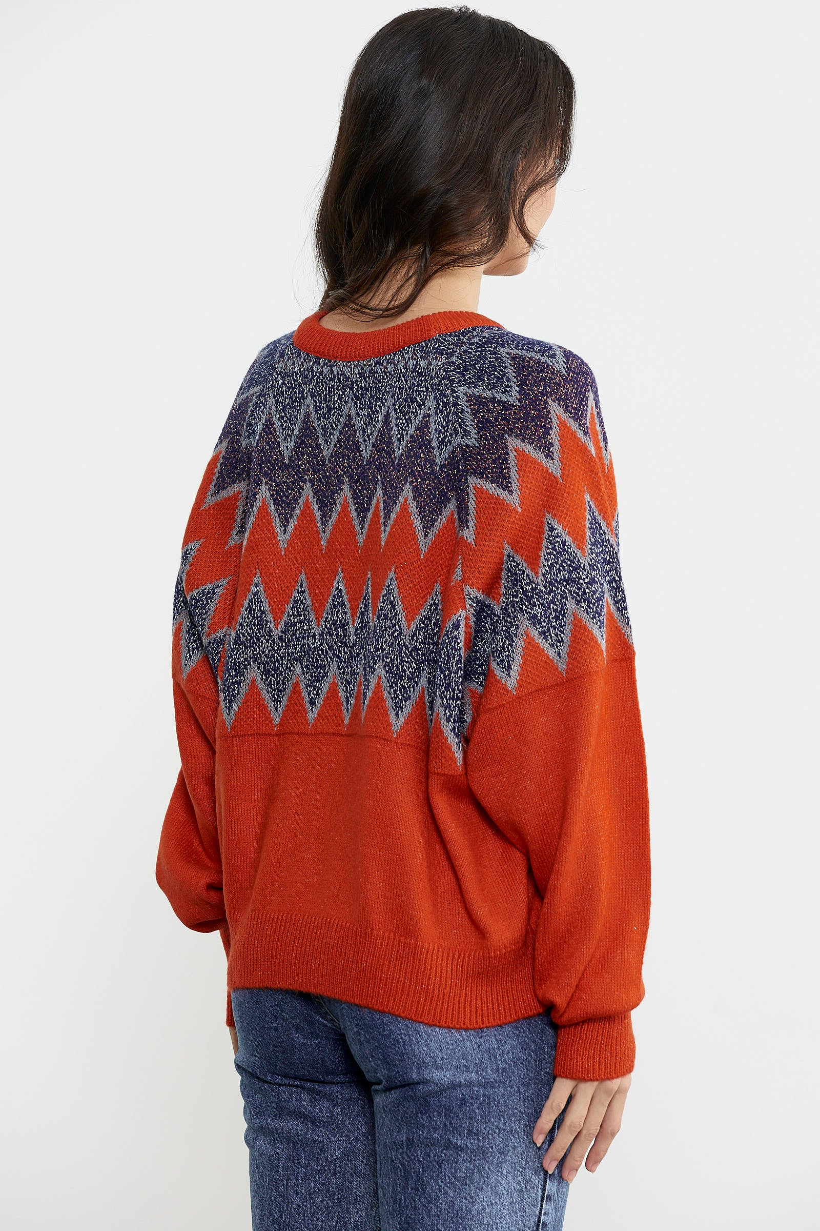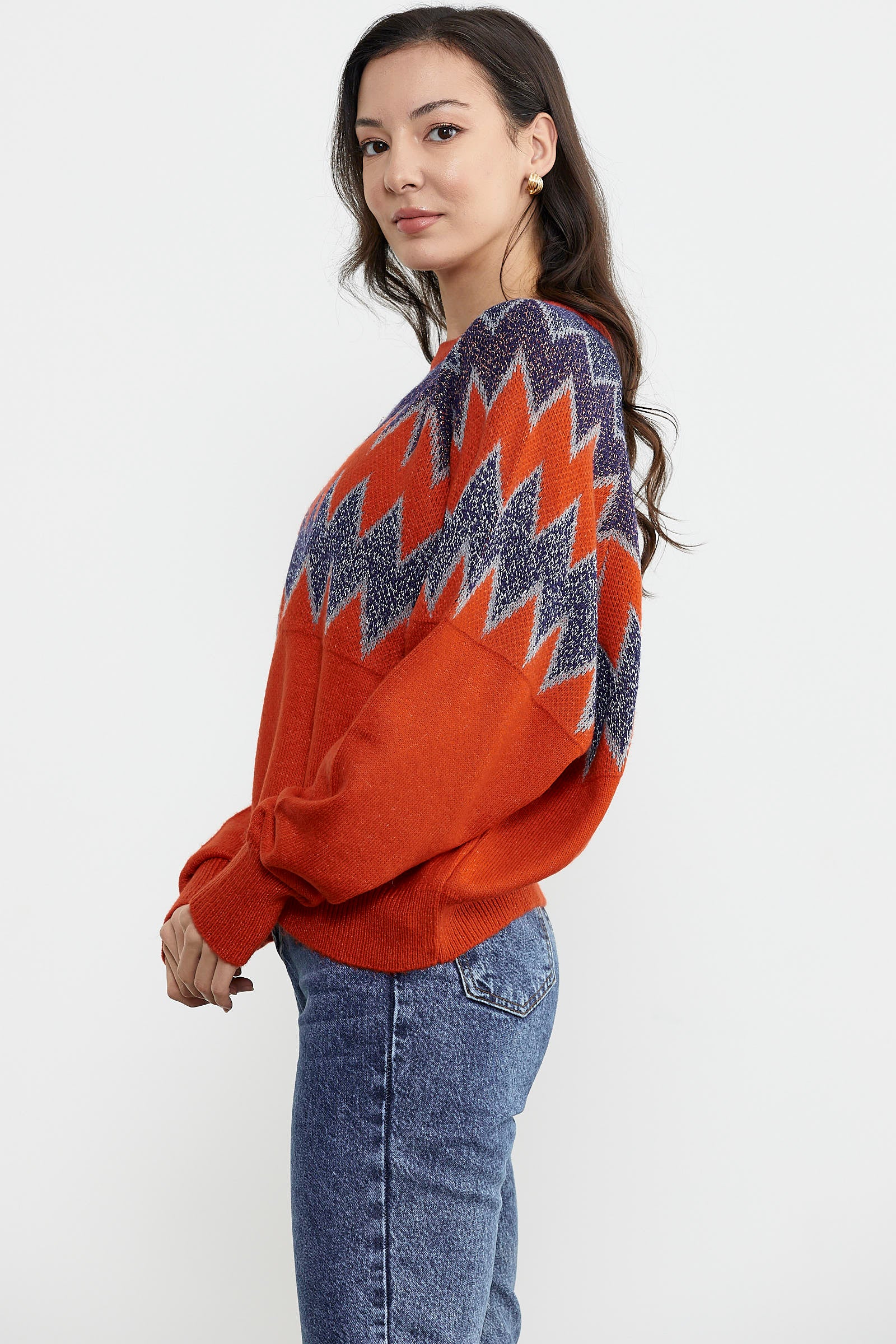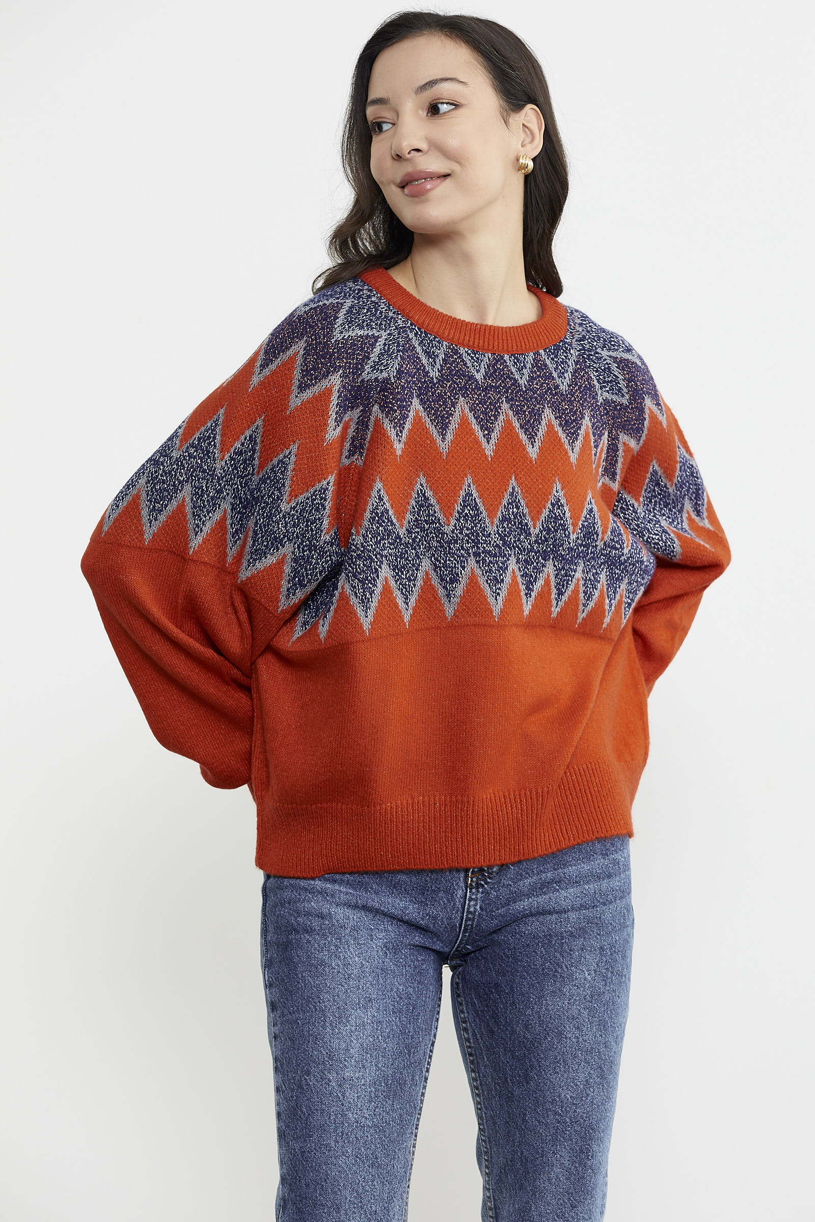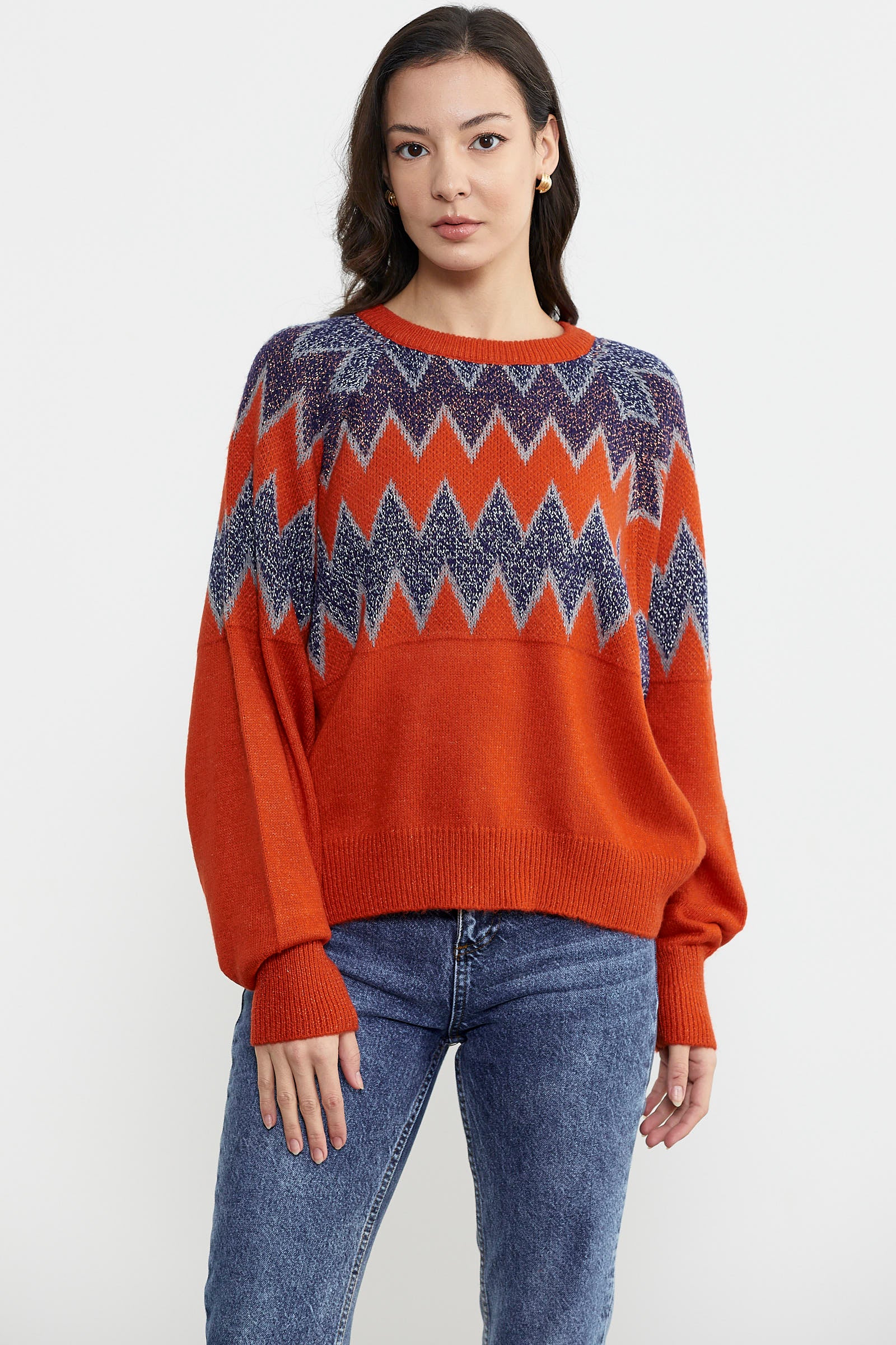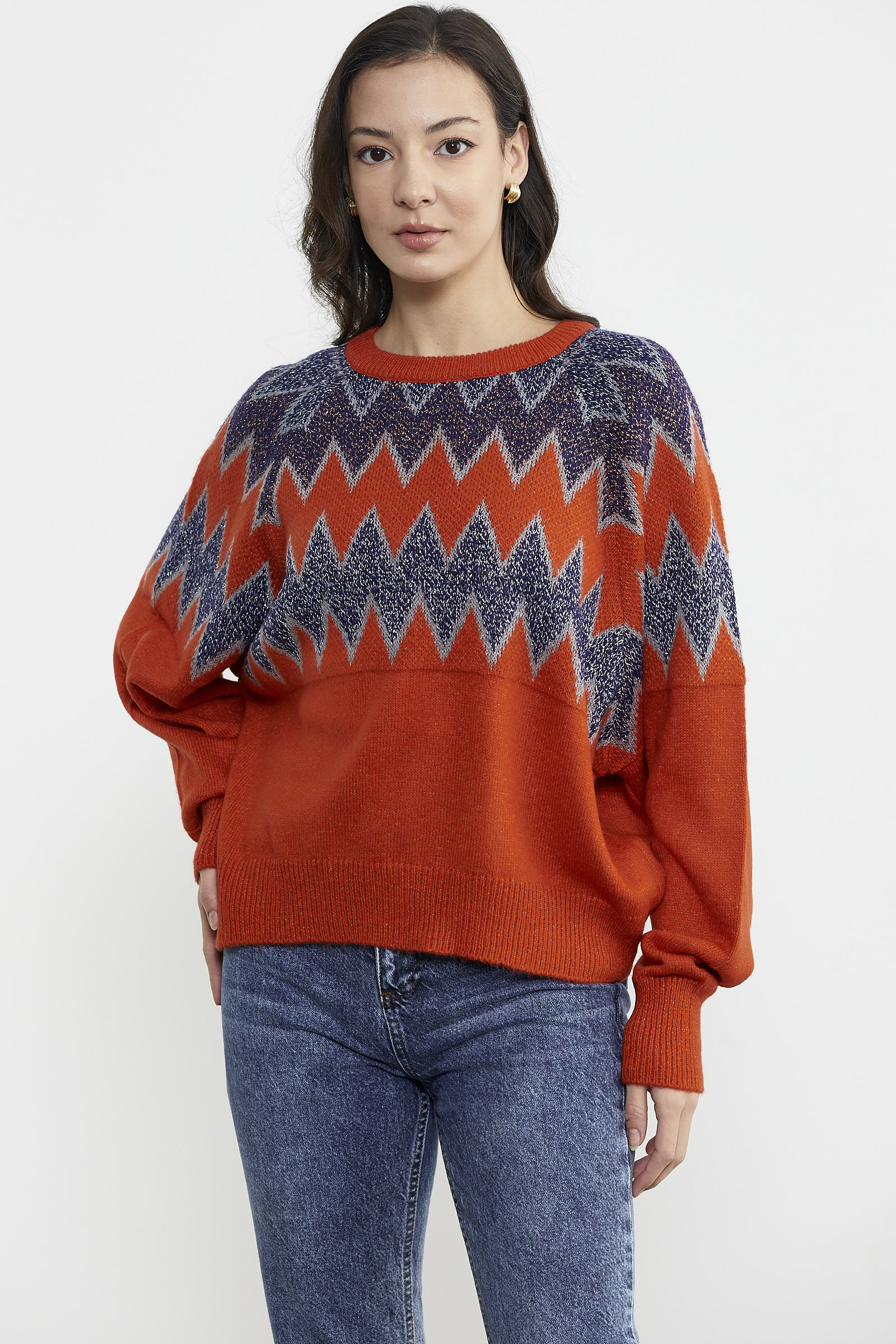 Zik Zak Desenli Kalın Triko Kazak - Koyu Oranj