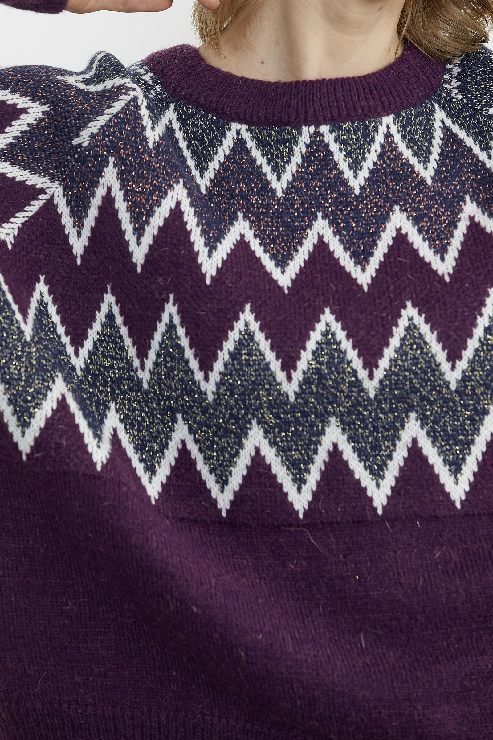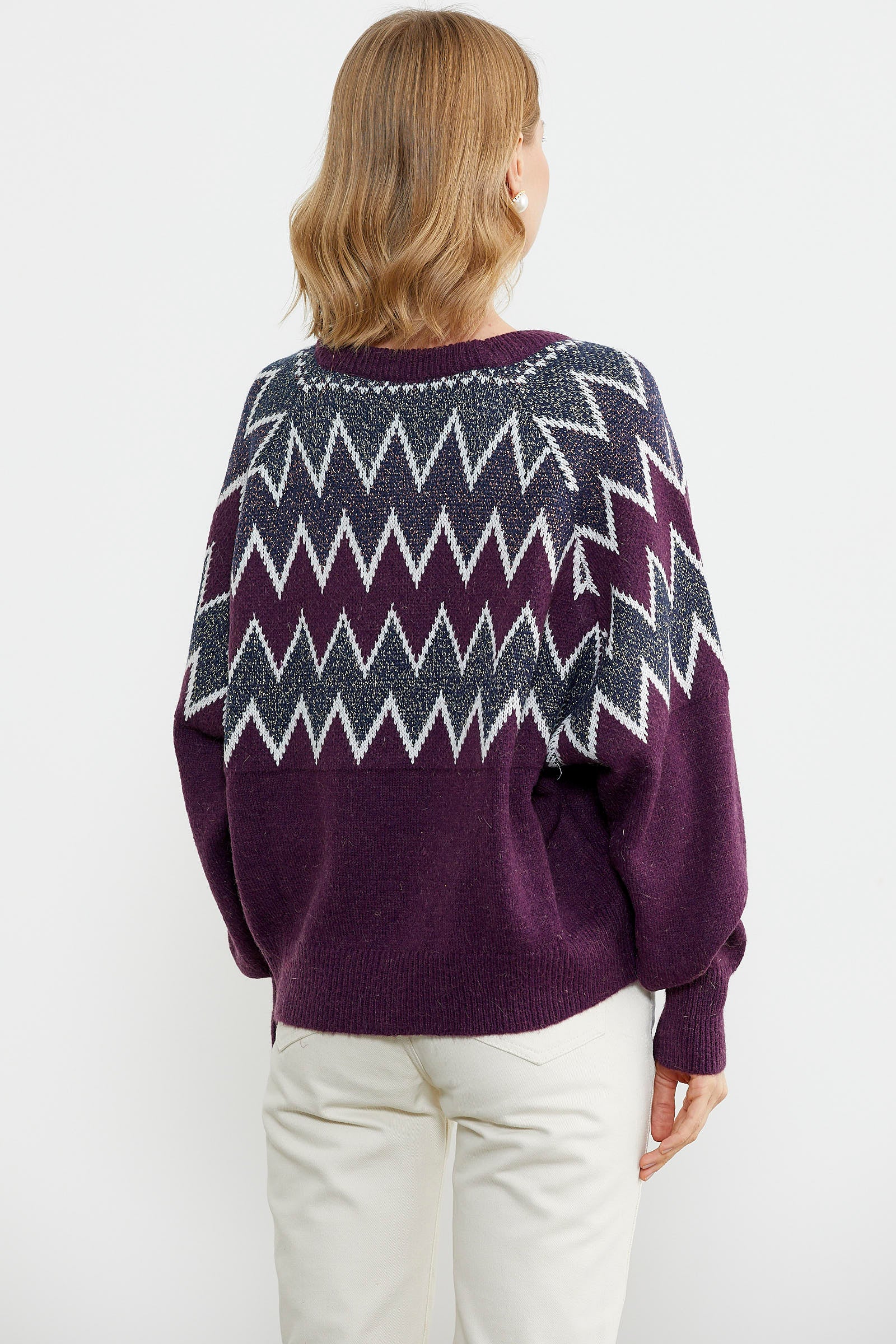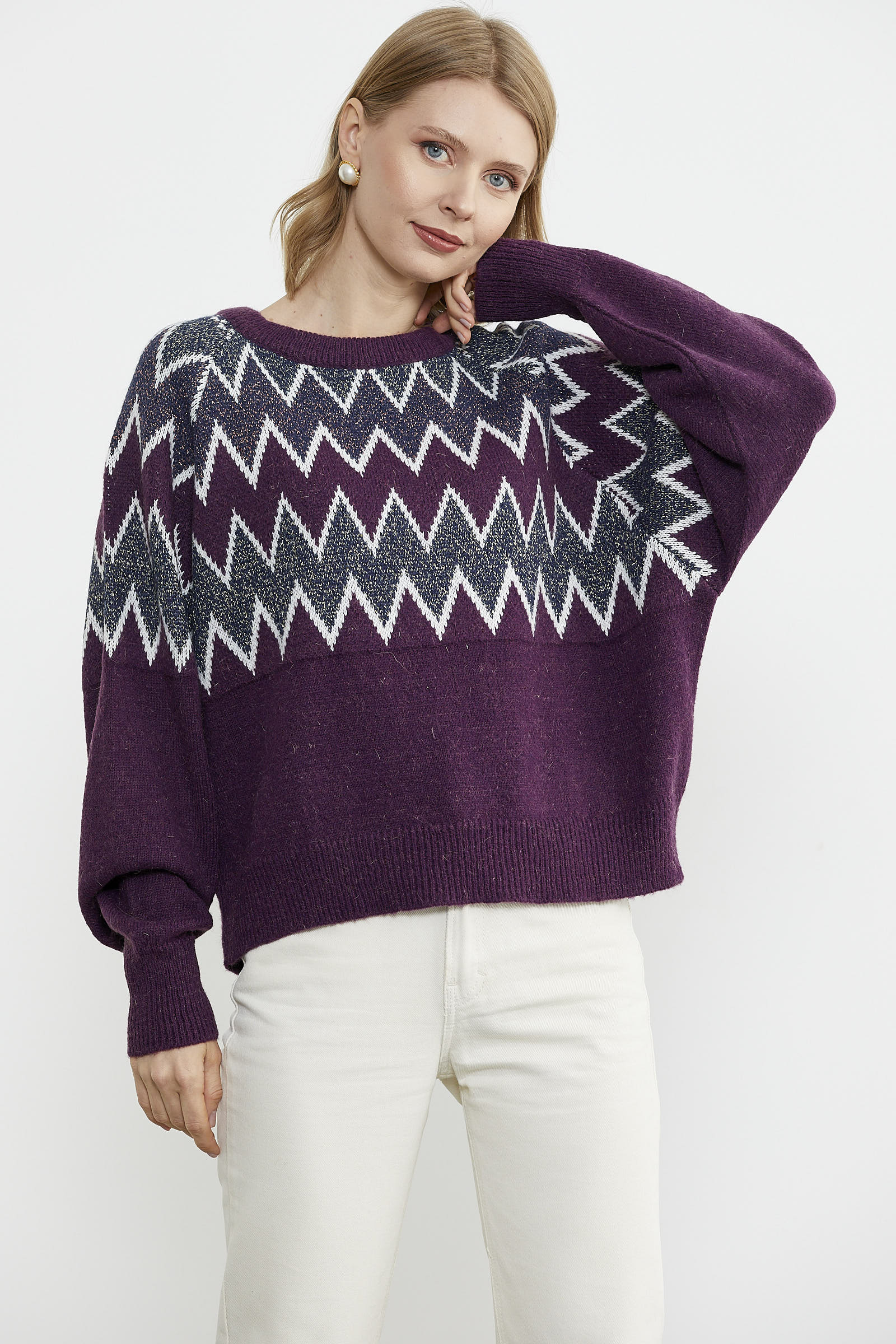 Zik Zak Desenli Kalın Triko Kazak - Mor
