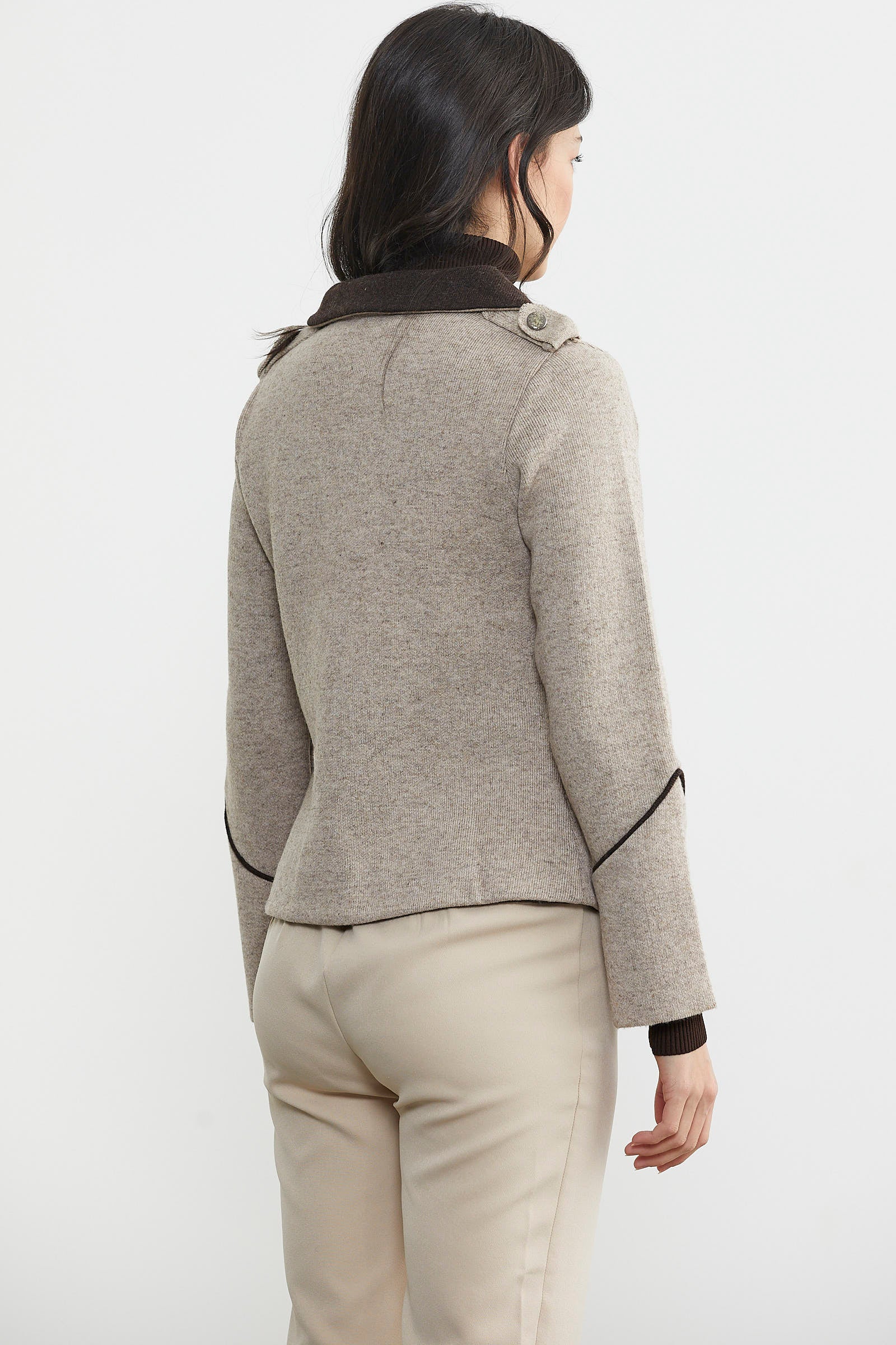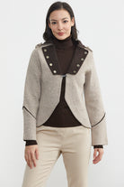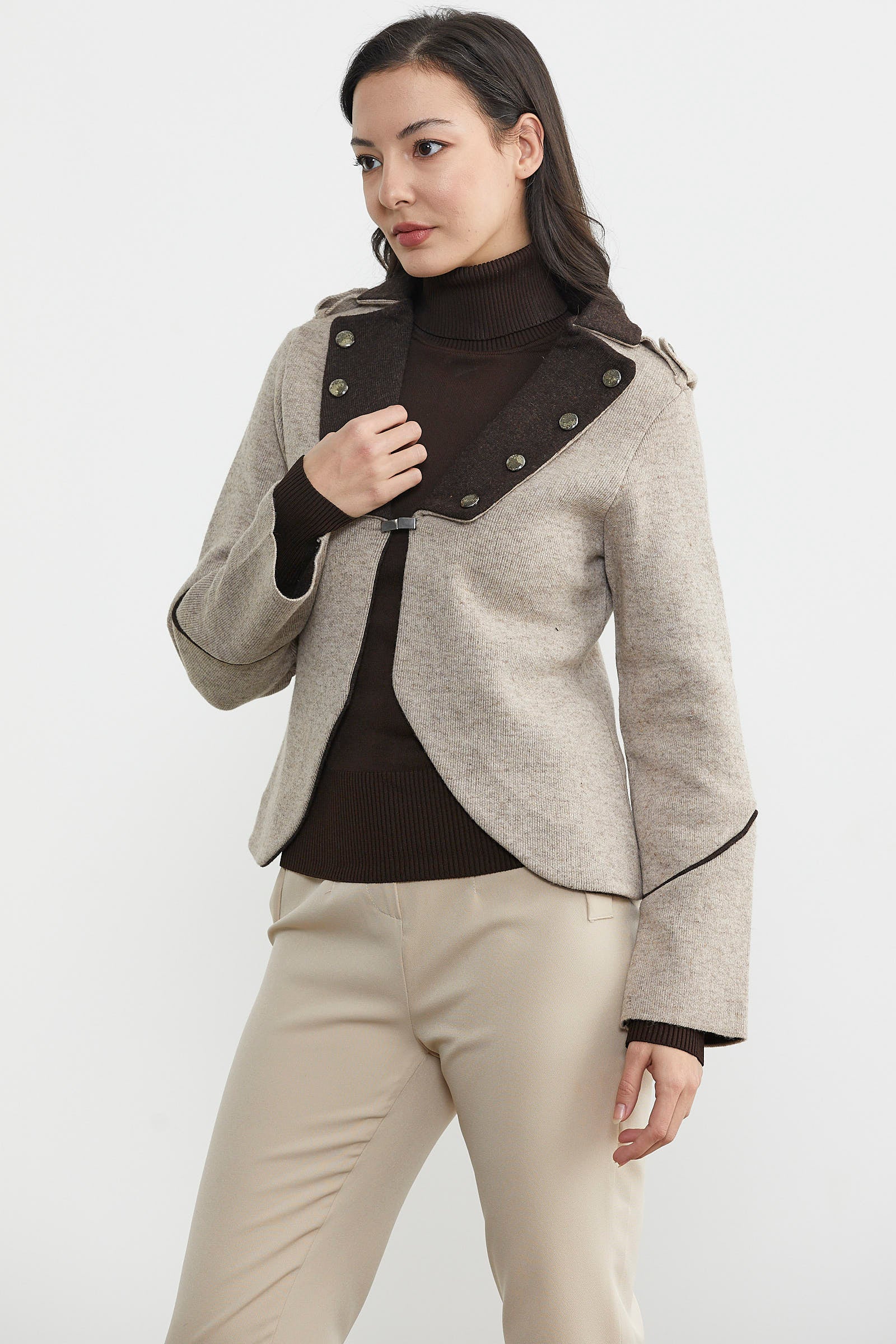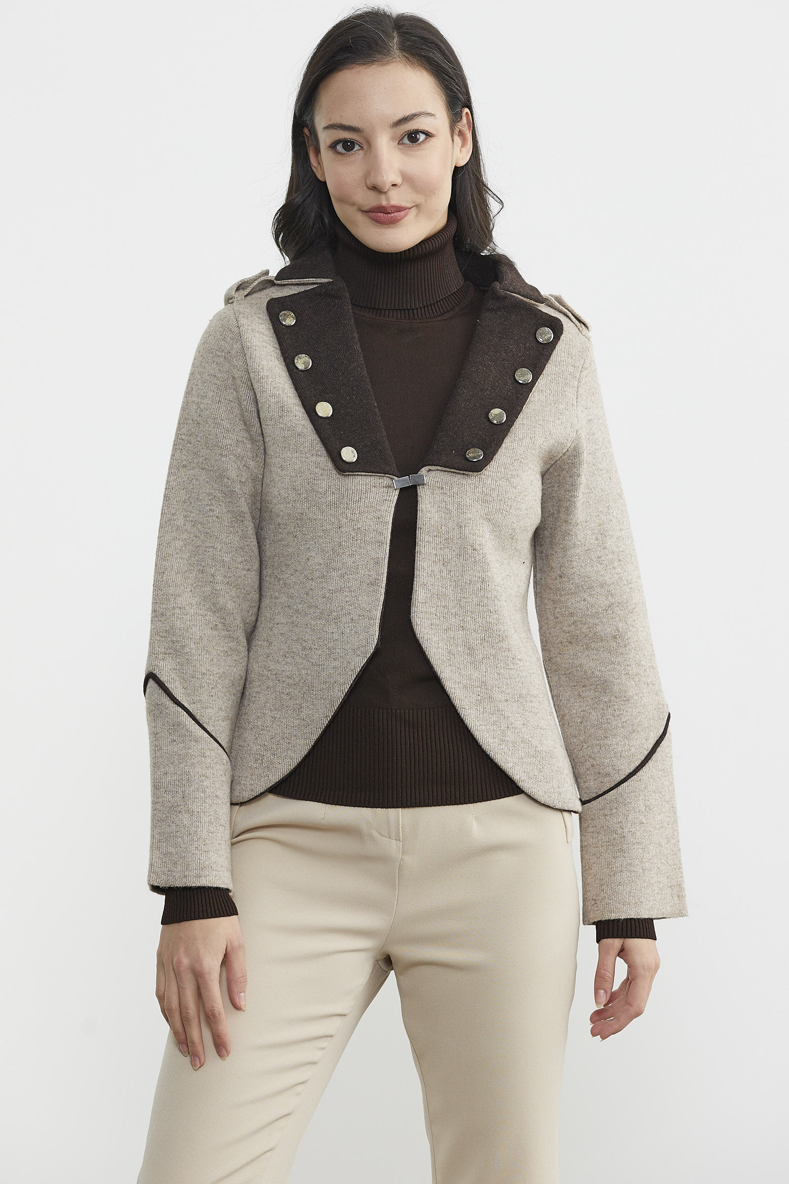 Zımba Detaylı Triko Ceket - Vizon - Kahverengi